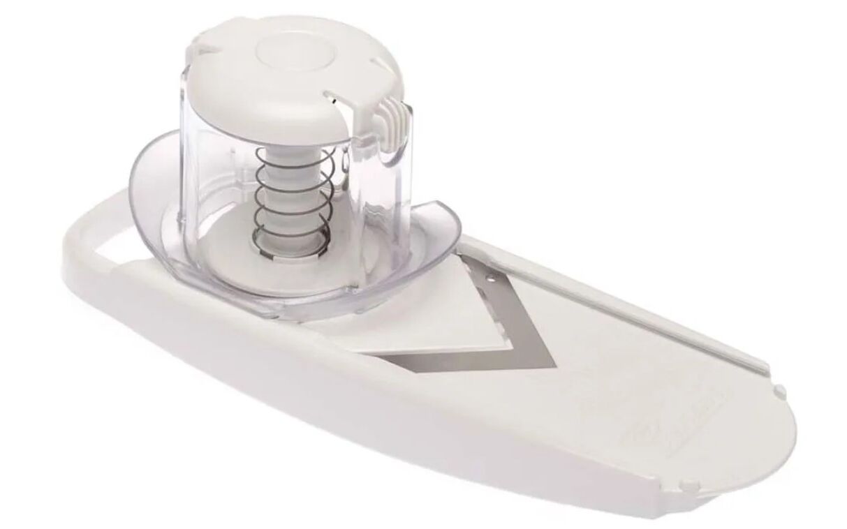 Status 115510 по своим качествам не уступает старшей модели 115010, но гораздо меньшего размера, что удобно для нарезки мелких продуктов питания, например, редиса, лука, клубники, моркови, грибов, лука-порей, оливок, копчёных колбас. V-образная форма ножа облегчает нарезку. Имеет регулировку толщины реза (до 3 мм). Оснащена замком безопасности.