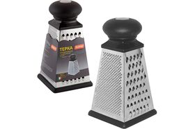 Четырехгранная терка предназначена для измельчения различных продуктов. Выполнена из нержавеющей стали увеличенной толщины 0.25 мм. Имеет четыре грани с отверстиями разной формы и размера, оснащена удобной прорезиненной ручкой.