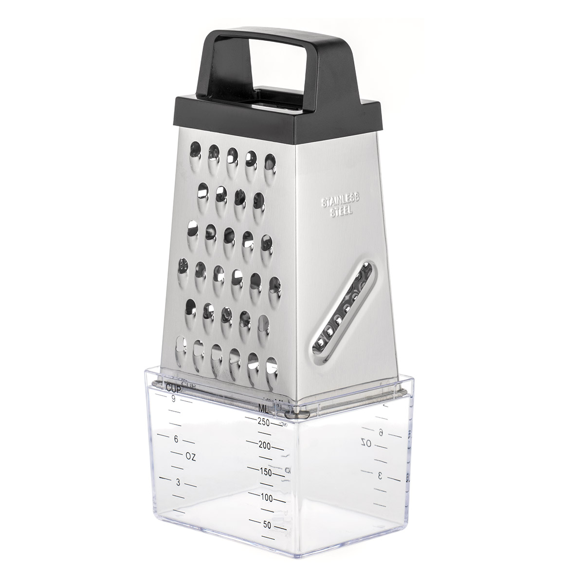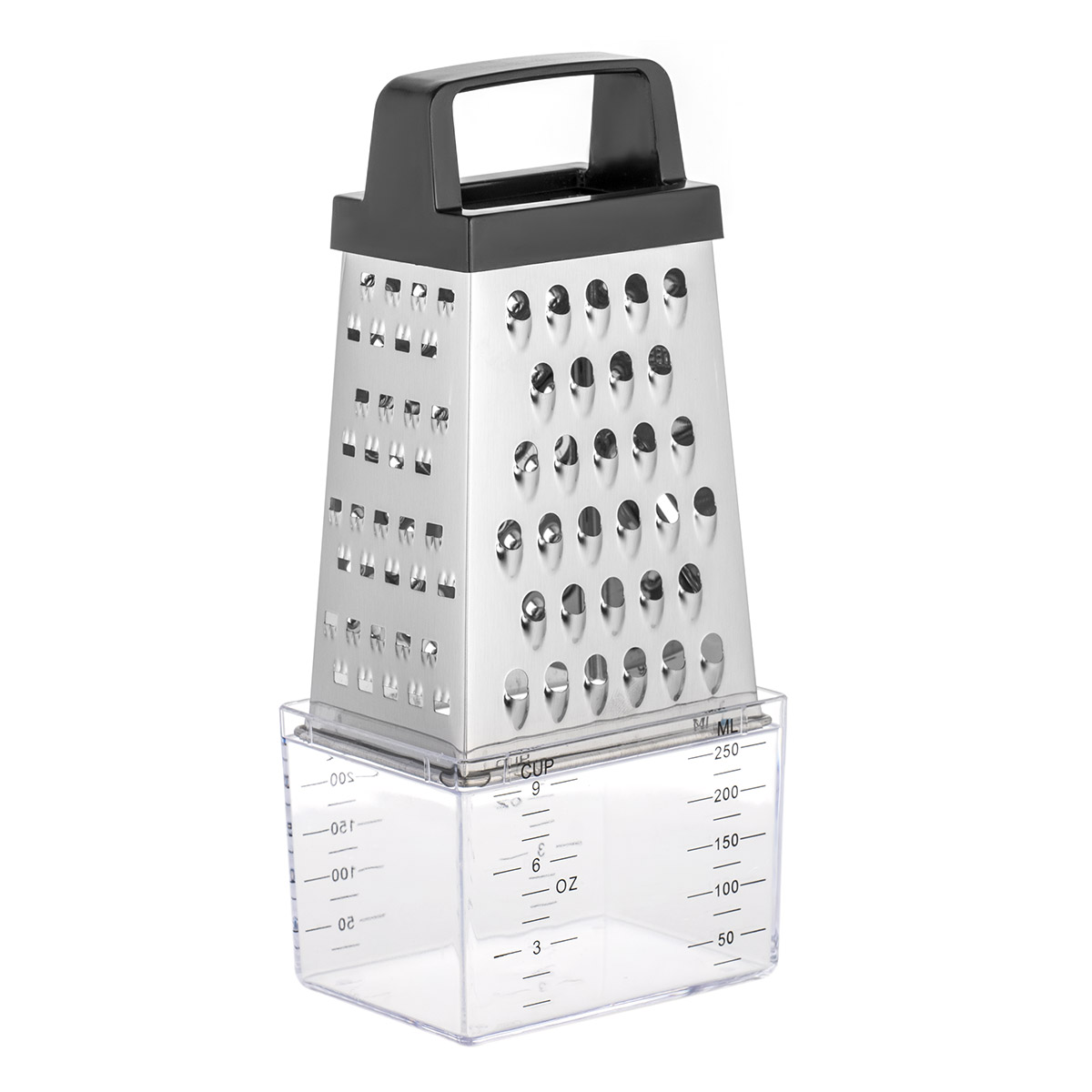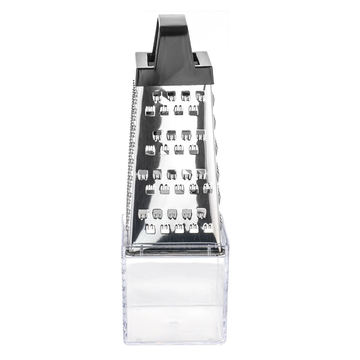 Удобная многофункциональная терка LARA подойдет для приготовления различных блюд. Шесть терочных поверхностей для любого вида измельчения. Высокое качество стали (18/0) и толщина (0,25 мм) гарантируют долгую службу аксессуара. Терка оснащена специальным контейнером с подробной мерной шкалой для точного соблюдения рецептов.