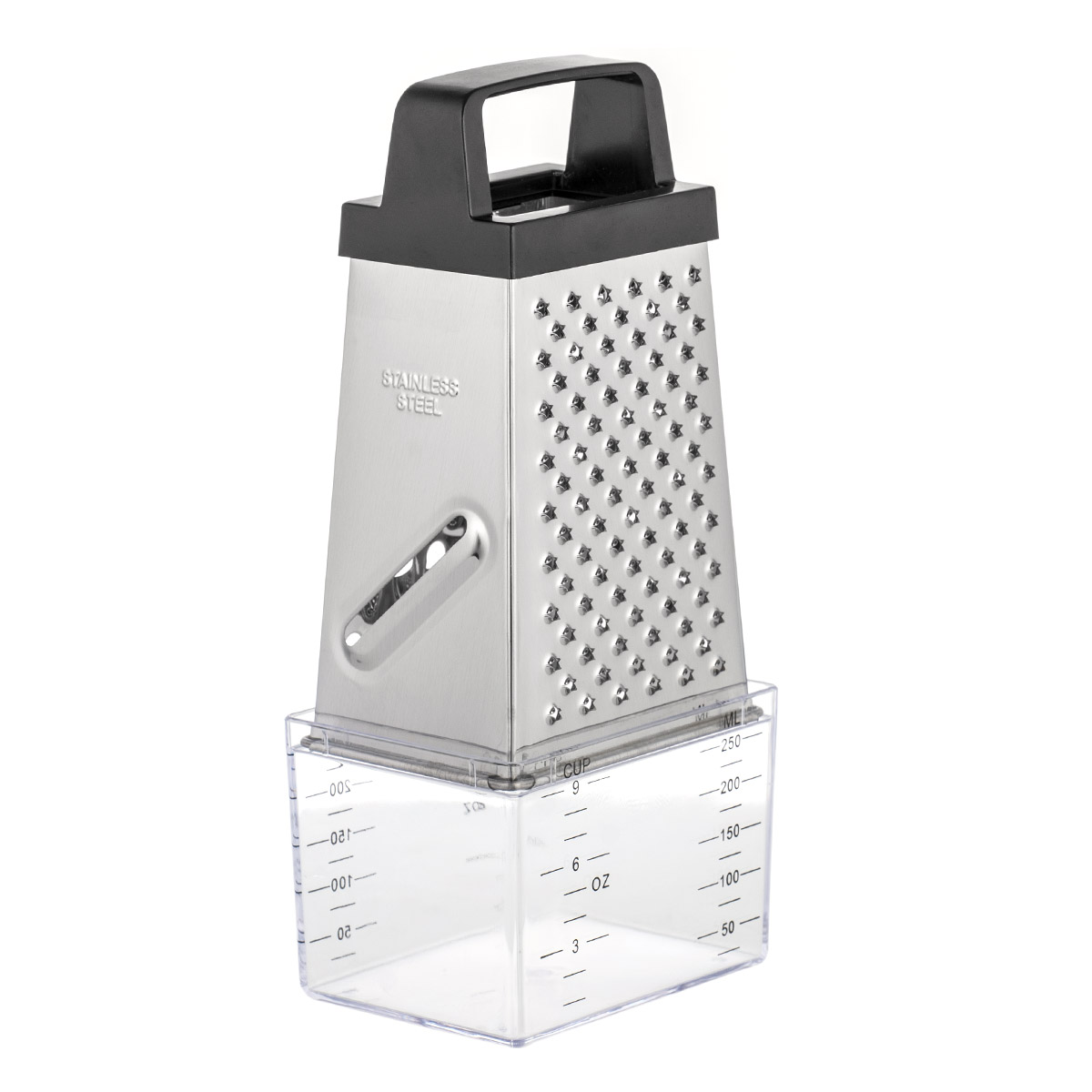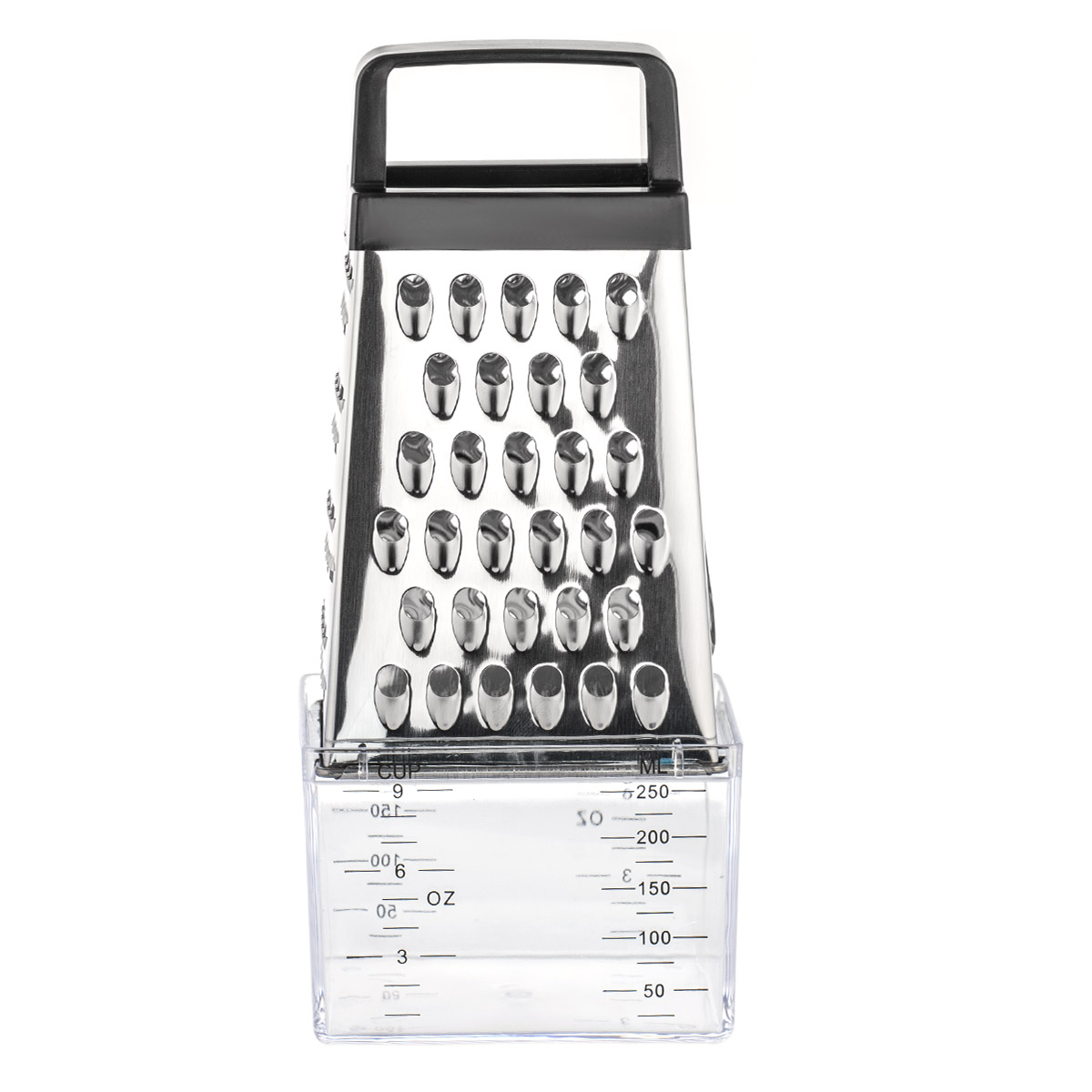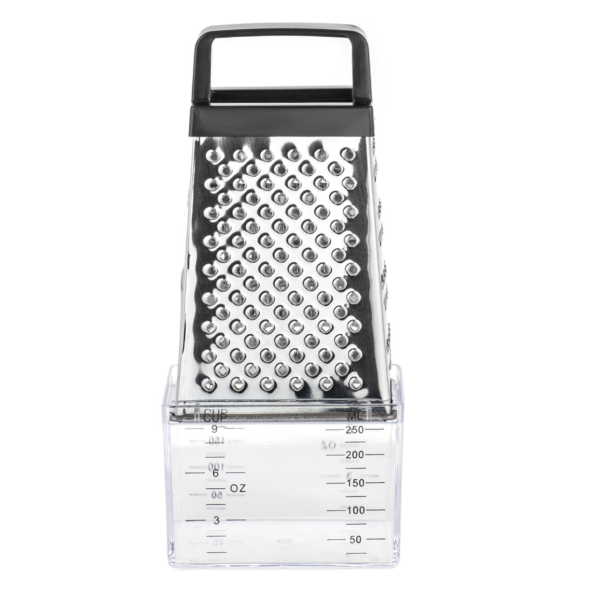 Удобная многофункциональная терка LARA подойдет для приготовления различных блюд. Шесть терочных поверхностей для любого вида измельчения. Высокое качество стали (18/0) и толщина (0,25 мм) гарантируют долгую службу аксессуара. Терка оснащена специальным контейнером с подробной мерной шкалой для точного соблюдения рецептов.