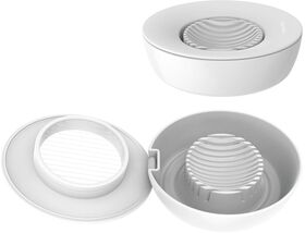 Яйцерезка Fiskars Functional Form сделана из ударопрочного нетоксичного пластика и идеально подходит для резки яиц тонкими ломтиками или кубиками. Благодаря наличию контейнера для маленьких кусочков, на столе будет чисто.