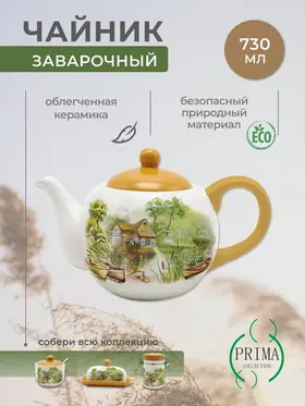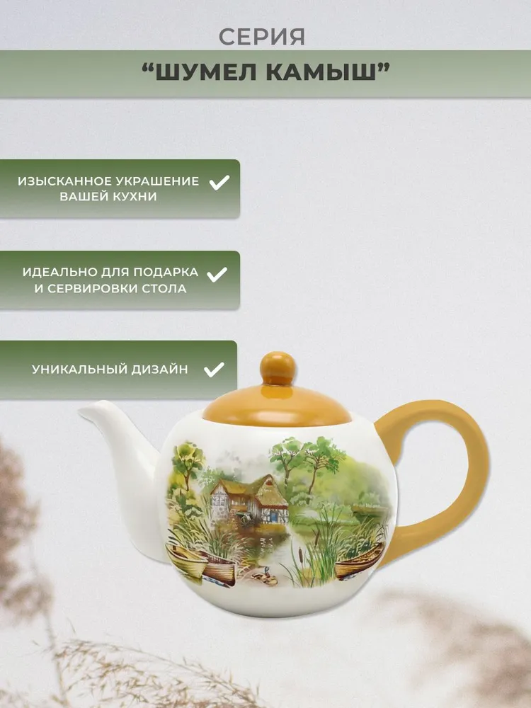 Чайник заварочный "Шумел камыш" от Prima Collection — это стильный и удобный аксессуар для кухни, который поможет создать уютную и приятную атмосферу за столом Изделие изготовлено из доломита, которая отличается прочностью, устойчивостью к механическим повреждениям и долговечностью. Чайник имеет объем 730 мл и подходит для приготовления напитков на небольшую компанию. Широкое горло позволяет легко засыпать чайные листья и наливать горячую воду. Оригинальный дизайн с изображением птиц на ветке делает чайник не только функциональным, но и привлекательным. Ручка чайника не нагревается при кипячении воды. Легкий уход и очистка чайника обеспечиваются благодаря гладкой поверхности доломита. Чайник "Шумел камыш", выполненный в современном стиле, станет украшением вашей кухни и порадует вас своей функциональностью и эстетикой.