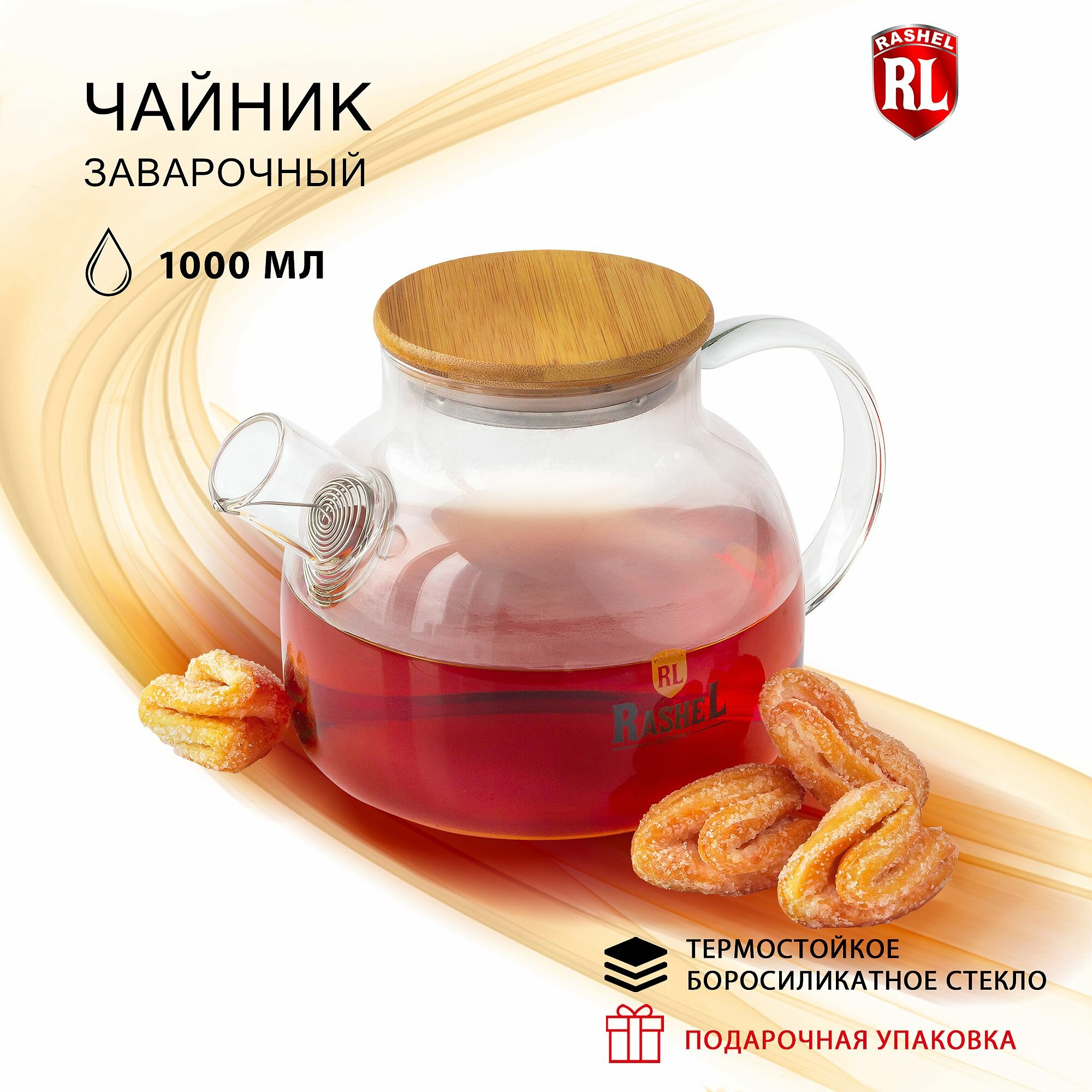 Заварочный чайник RASHEL 1 л R8341 удобен для заваривания чая и фруктовых напитков, для настаивания трав и морсов.
