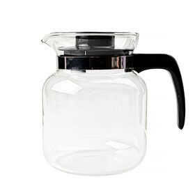Чайник из термостойкого стекла, объем 1200 мл, очень легкий и удобный в эксплуатации. Материал ручки из пластика.