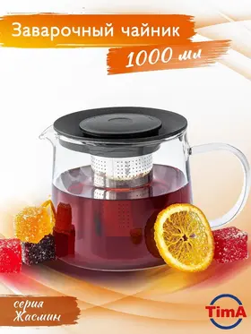 Заварочный чайник 1 л стеклянный с ситечком (сетчатый фильтр) Тима из жаропрочного стекла отлично подойдет для кухни, офиса или дачи, изделие поставляется в подарочной упаковке. Большой стеклянный чайник бочонок для заварки предназначен для чая травяных настоев ягод, фруктов, воды и др это именно то, в чем нуждается ваша кухня.
