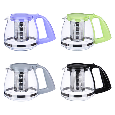 Заварочный чайник объемом 750мл из жаропрочного стекла, с пластиковой ручкой и крышкой, с ситечком из нержавеющей стали, подходит для заваривания чая и трав.