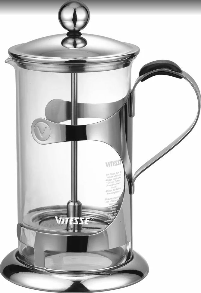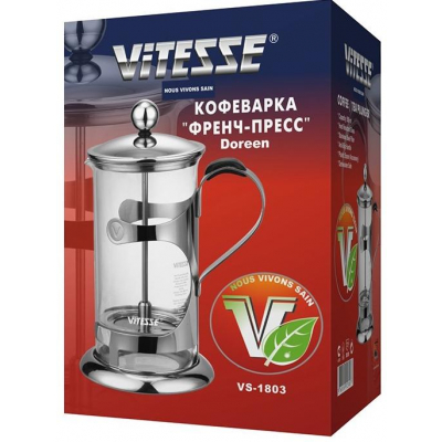 Vitesse VS-1803 – простая по конструкции и компактная модель. Френч-пресс выполнен из безопасных материалов, не вступающих в реакцию с содержимым, но при этом позволяющих его вкусу и аромату полноценно раскрыться.