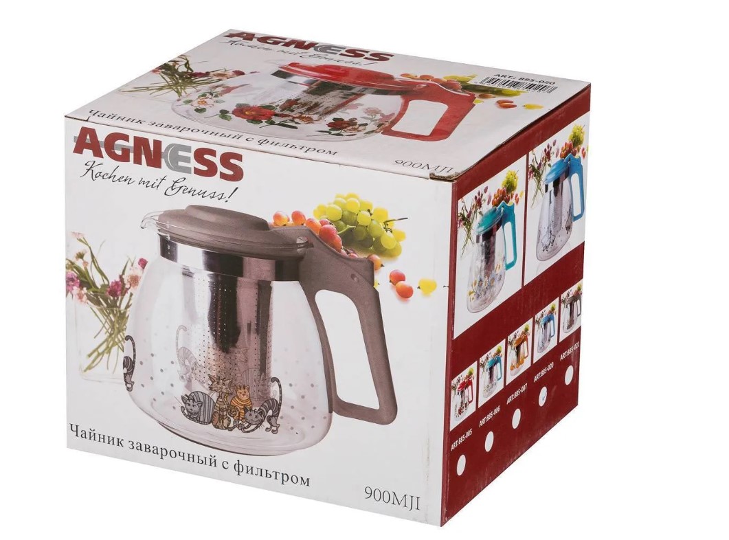 Заварочный стеклянный чайник TM AGNESS является прекрасным украшением стола.