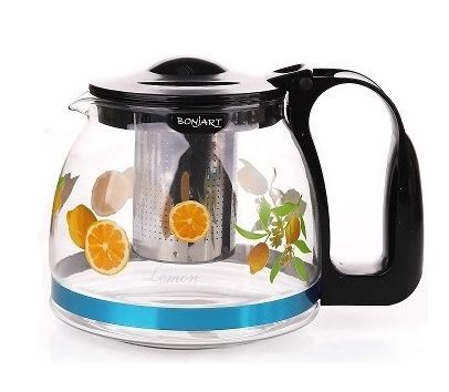 Заварочный чайник 1250 мл., Жаропрочное стекло, деколь, метал. фильтр