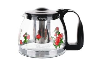 Заварочный чайник 1250 мл., Жаропрочное стекло, деколь, металлический фильтр