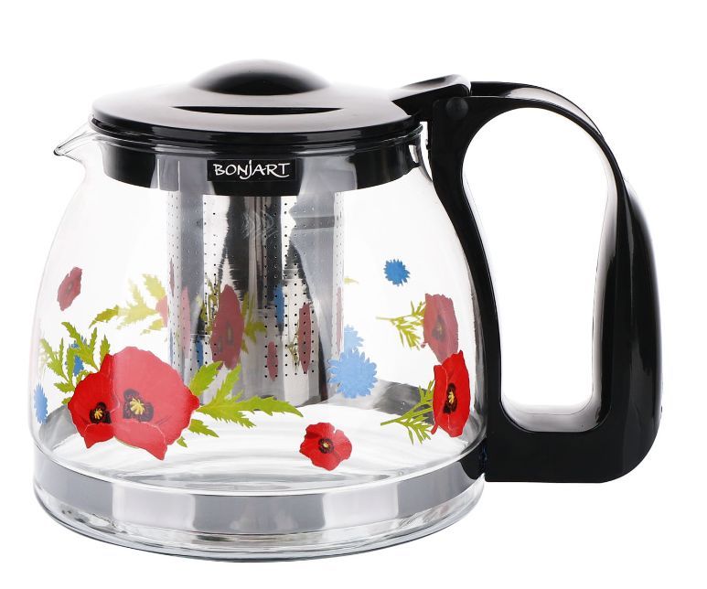 Заварочный чайник 1250 мл., Жаропрочное стекло, деколь, метал. фильтр