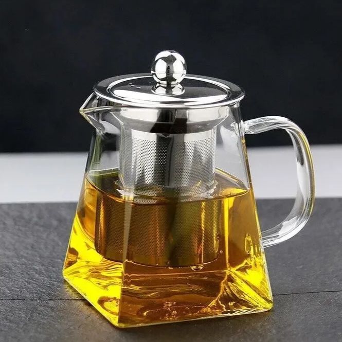 Чайник заварочный 950 мл, возможно использовать на плите. Съемный фильтр изготовлен из нержавеющей стали, ручка не нагревается, корпус из термостойкого боросиликатного стекла. Боросиликатное стекло изготавливают из натуральных природных материалов, которые не выделяют вредных составляющих при нагревании, так как стекло не содержит кадмий или свинец. Посуда из боросиликатного стекла имеет меньший вес, и помимо безопасности, долговечности, цены, боросиликатное стекло отличается повышенной термической стойкостью и повышенной стойкостью к механическим повреждениям, поэтому даже после многократного использования посуда не становится серой и всегда выглядит как новая. Особенности термоизолированная ручка, ситечко, мытье в посудомоечной машине Материал ручки стекло Вид ручки фиксированная Высота 16 см Вес 0.425 кг Комплектация Заварочный чайник, фильтр, крышка, упаковка Дополнительная информация Дополнительные отверстия в крышке для выпуска пара