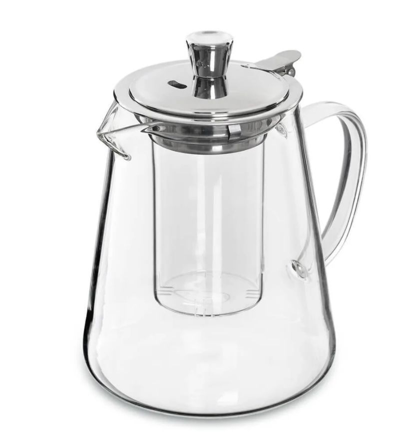 Заварочный чайник с ситечком с крышкой 950мл Заварочный чайник Эстет изготовлен из термостойкого боросиликатного стекла. Фильтр из термостойкого стекла. Изделия из стекла не впитывают запахи, благодаря чему вы всегда получите натуральный, насыщенный вкус и аромат напитков. Заварочный чайник из стекла удобно использовать для повседневного заваривания чая практически любого сорта. Но цветочные, фруктовые, красные и желтые сорта чая лучше других раскрывают свой вкус и аромат при заваривании именно в стеклянных чайниках, а также сохраняют все полезные ферменты и витамины, содержащиеся в чайных листах. Стеклянный фильтр гарантирует прозрачность и чистоту напитка от чайных листьев, при этом сохранив букет и насыщенность чая. Прозрачные стенки чайника дают возможность насладиться насыщенным цветом заваренного чая. Подходит для мытья в посудомоечной машине.