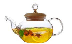 Заварочный чайник Kelli KL-3222, 600 мл. Чайник изготовлен из высококачественного боросиликатного стекла с крышкой из бамбука. Ручка на крышке "под кристалл". Преимущества боросиликатного стекла в том, что чайник из него получается легким, термостойким, не впитывает запахов, а также не тускнеет даже по прошествии времени. Удобная не нагревающаяся ручка из стекла защищает руки от ожогов. Съемный фильтр-пружинка из высококачественной нержавеющей стали легко моется. Чайник можно использовать на источниках тепла – газовых, галогеновых, электрических и стеклокерамических плитах. Компактная подарочная упаковка.