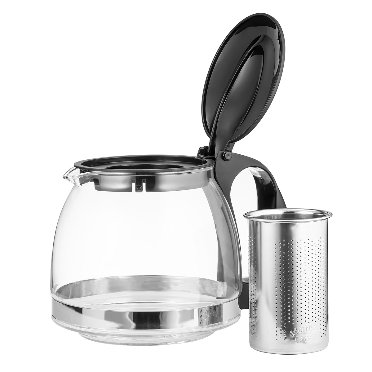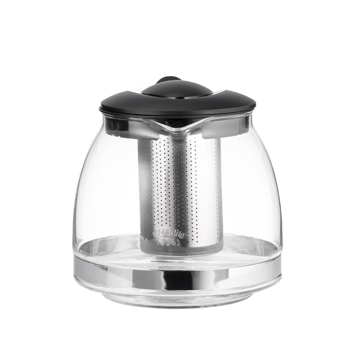 Вместительный чайник для заваривания LARA – отличное решение для большой компании. Объема чаши достаточно, чтобы заварит 6-7 порции любимого напитка. Прекрасная возможность, чтобы проявить гостеприимство и порадовать своих друзей. Заварочный чайник хорошо впишется в любой интерьер. При изготовлении были использованы только экологически чистые материалы. Чайник классической формы выполнен из прозрачного силикатного стекла, стильная крышка и ручка – из пищевого пластика. Кольцо из нержавеющей стали с хромированной отделкой крепит ручку к колбе и дополняет внешний вид. Жесткий фильтр для заваривания из нержавеющей стали легко снимать и чистить.