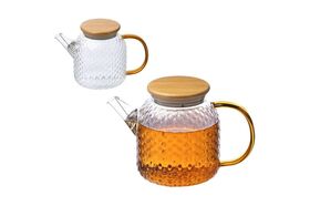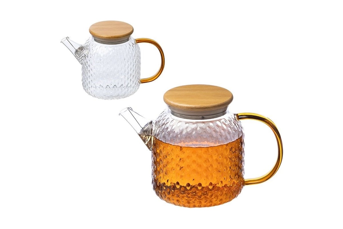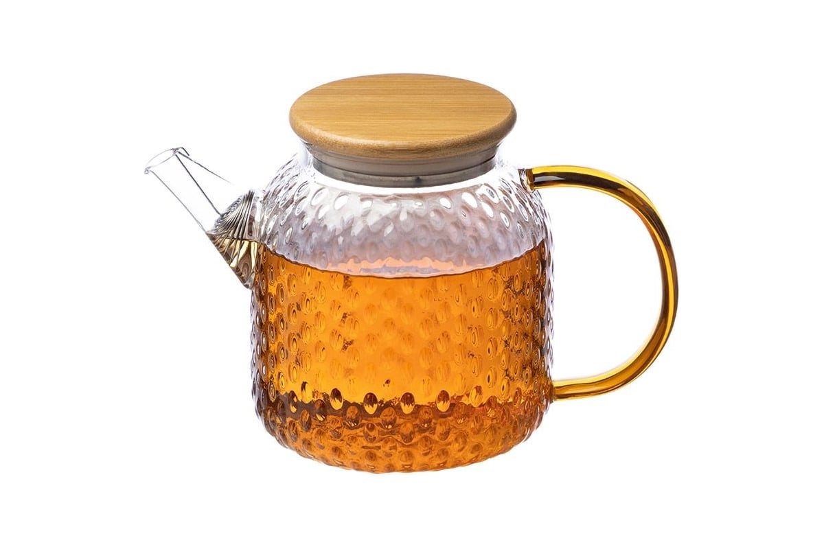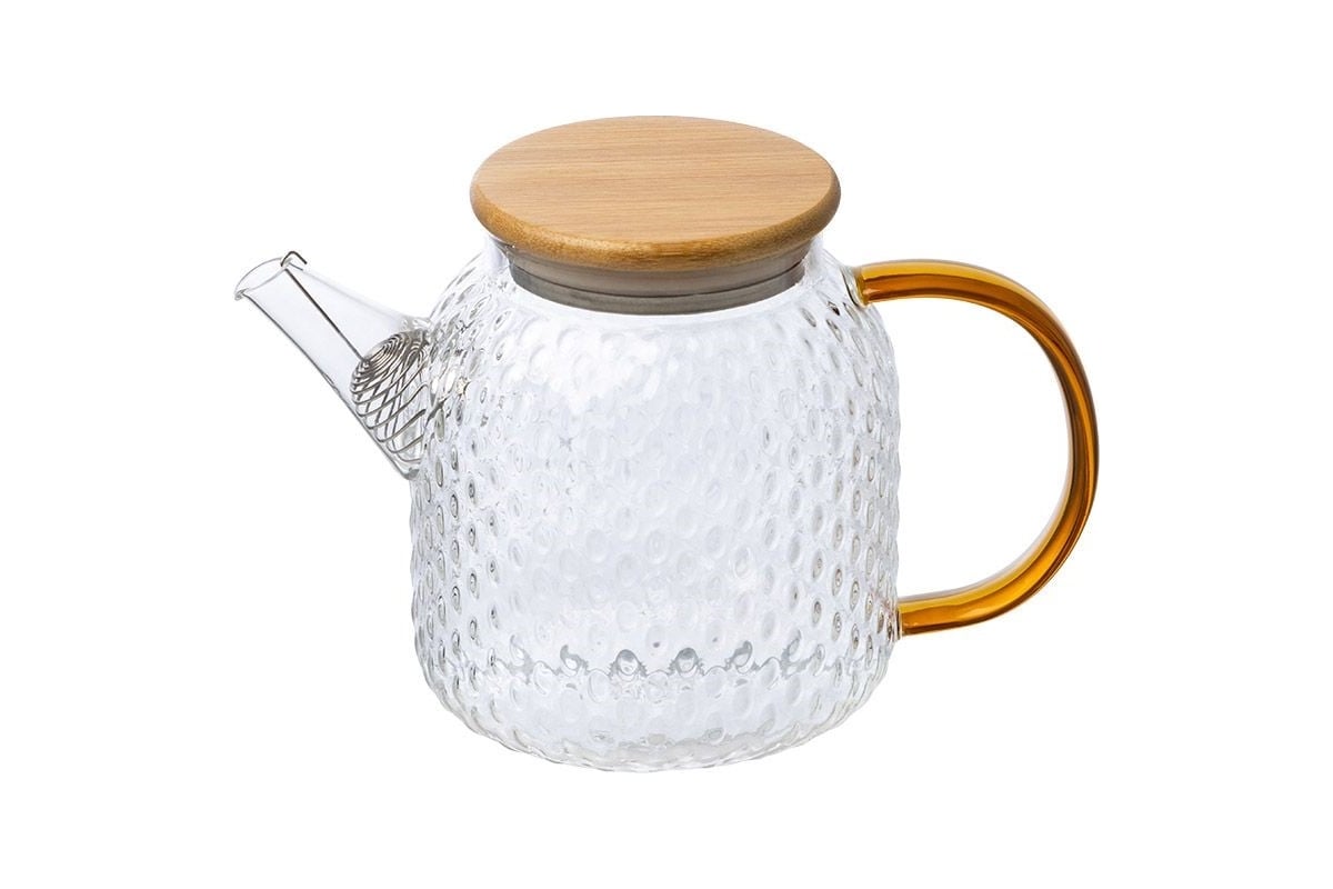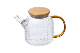 Заварочный чайник Leonord aroma, объем 1 л, из боросиликатного стекла с рельефом, с крышкой из бамбука 105040 предназначен для использования в офисе или дома.