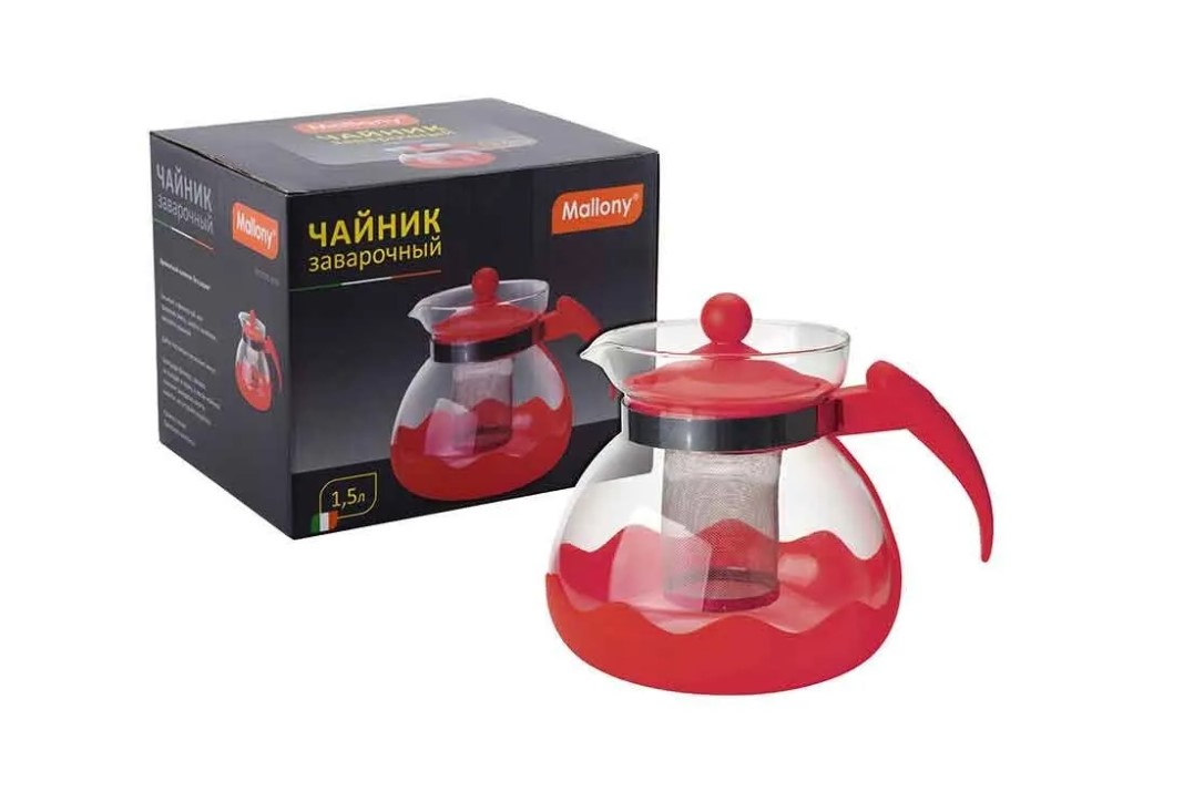 Чайник заварочный Mallony Decotto-1500, 1,5л, фильтр нерж сталь, стекло/пластик, красный 910107