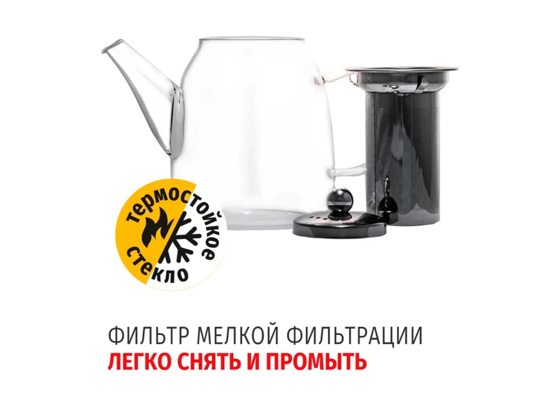 - Термостойкое боросиликатное стекло позволяет кипятить и нагревать воду на плите прямо в заварнике