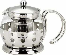 Чайник заварочный 0,7 л Термостойкое стекло и нержавеющая сталь Зеркальная полировка Ручка, фильтр и крышка из нержавеющей стали