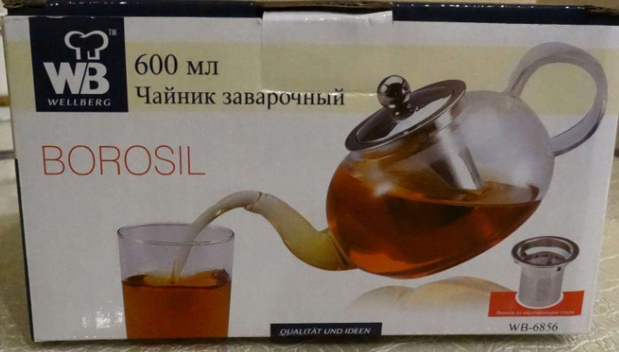 Чайник заварочный Wellberg "Borosil" изготовлен из экологически чистых и безопасных материалов. Колба выполнена из боросиликатного стекла и выдерживает температуру до 120°С. Чайник оснащен фильтром и крышкой, которые выполнены из нержавеющей стали.