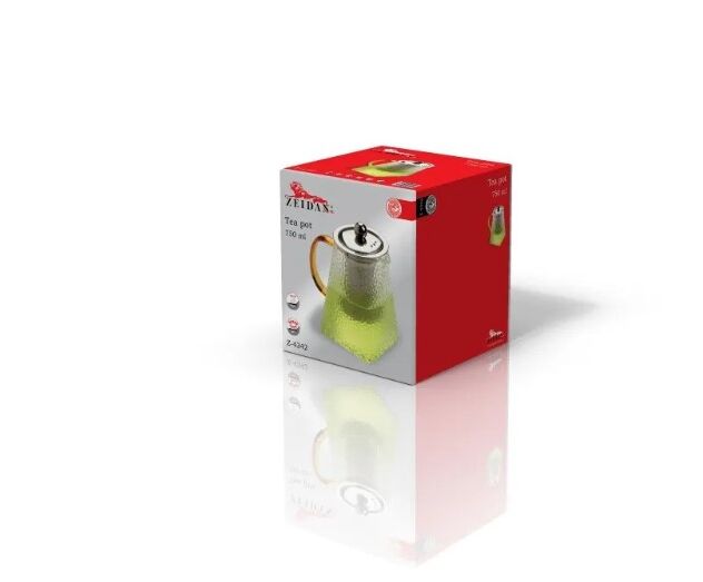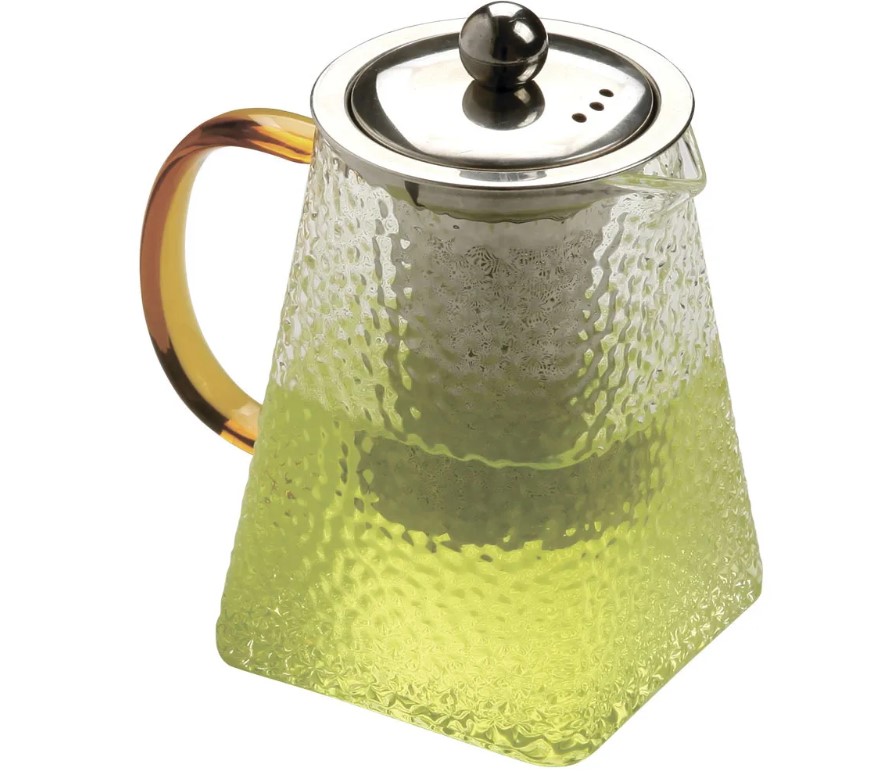 Чайник заварочный, 750 мл, корпус из термостойкого боросиликатного рельефного стекла. Возможность использования на плите. Съемный фильтр и крышка из нержавеющей стали, не нагревающаяся ручка из стекла, подарочная упаковка.