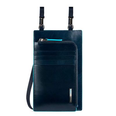Клатч кожаный из коллекции Piquadro Blue Square. Изготовлен из мягкой телячьей кожи с восковой пропиткой и голубым кантом. Клатч имеет 1 отделения на молнии в который можно положить телефон, на передней части клатча располагаются кармашки для 4 банковских карт.