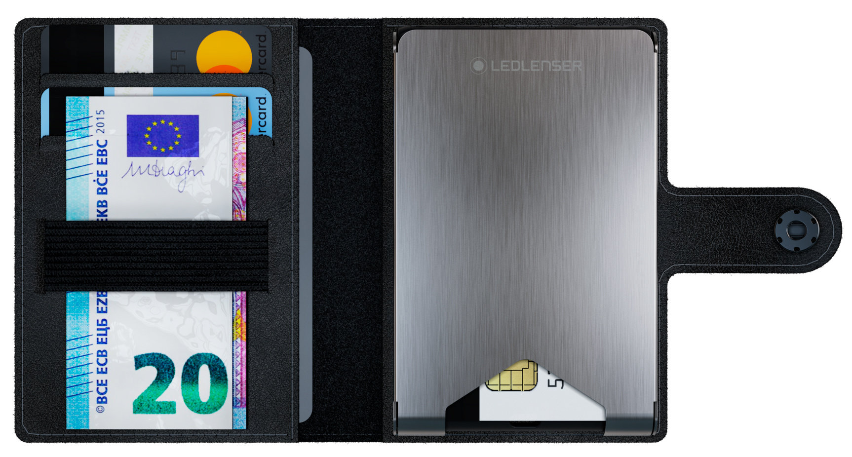LED Lenser Lite Wallet – инновационный и функциональный аксессуар для повседневного использования. Это кошелек из натуральной кожи с RFID-защитой и фонариком, который светит в разы ярче штатного фонаря смартфона. Внутри него предусмотрено несколько отделений для банковских карт и резинка для хранения бумажных купюр. Встроенный фонарь может освещать пространство вокруг световым потоком в 150 Лм, либо работать в экономичном режиме целых 12 часов. Питается устройство от аккумулятора, для зарядки которого можно использовать комплектный кабель USB Type-C или беспроводную зарядку.
