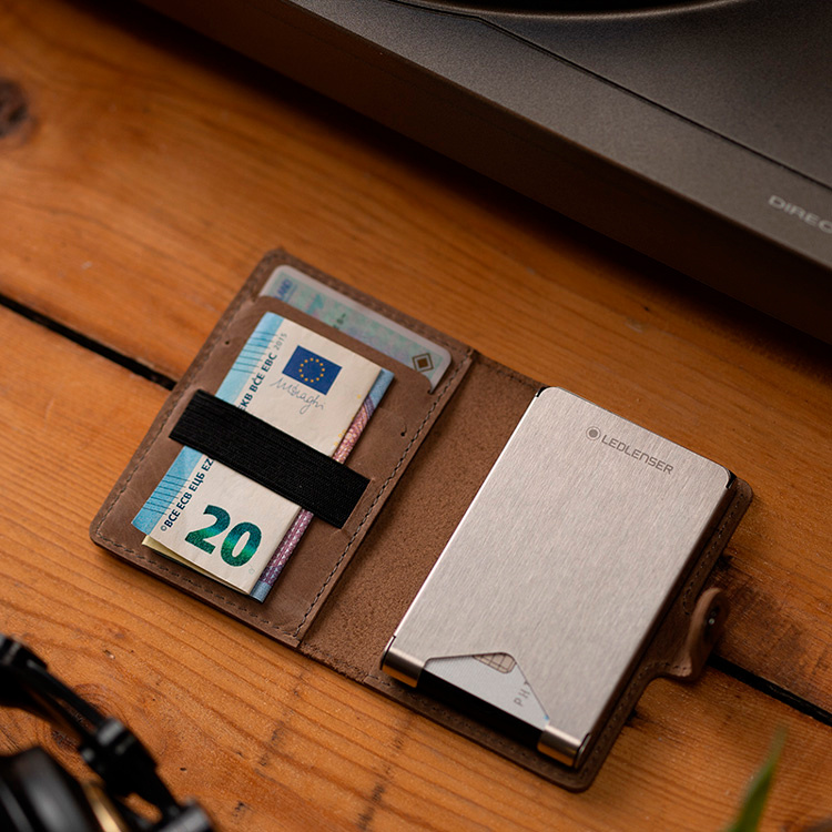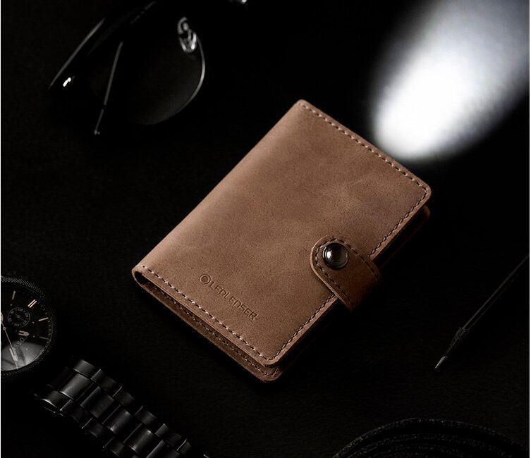 LED Lenser Lite Wallet – инновационный и функциональный аксессуар для повседневного использования. Это кошелек из натуральной кожи с RFID-защитой и фонариком, который светит в разы ярче штатного фонаря смартфона. Внутри него предусмотрено несколько отделений для банковских карт и резинка для хранения бумажных купюр. Встроенный фонарь может освещать пространство вокруг световым потоком в 150 Лм, либо работать в экономичном режиме целых 12 часов. Питается устройство от аккумулятора, для зарядки которого можно использовать комплектный кабель USB Type-C или беспроводную зарядку.