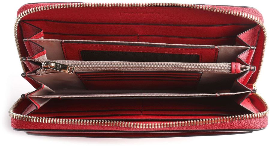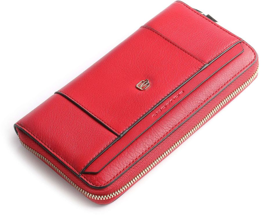 Женское портмоне на круговой застежке-молнии, с четырьмя перегородками, отделениями для монет, кредитных карт и защитой от радиочастотной идентификации данных.