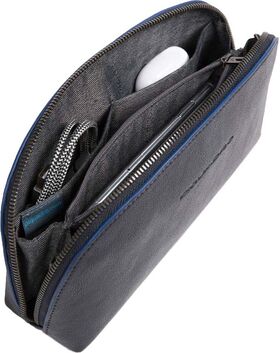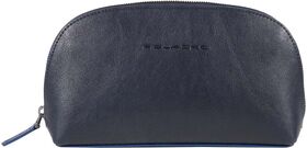 Несессер на молнии из коллекции B2S. Изготовлен из натуральной кожи с синей окантовкой. Закрывается на молнию. Внутри основного отделения находятся открытые кармашки и отделение для мобильного телефона на молнии.