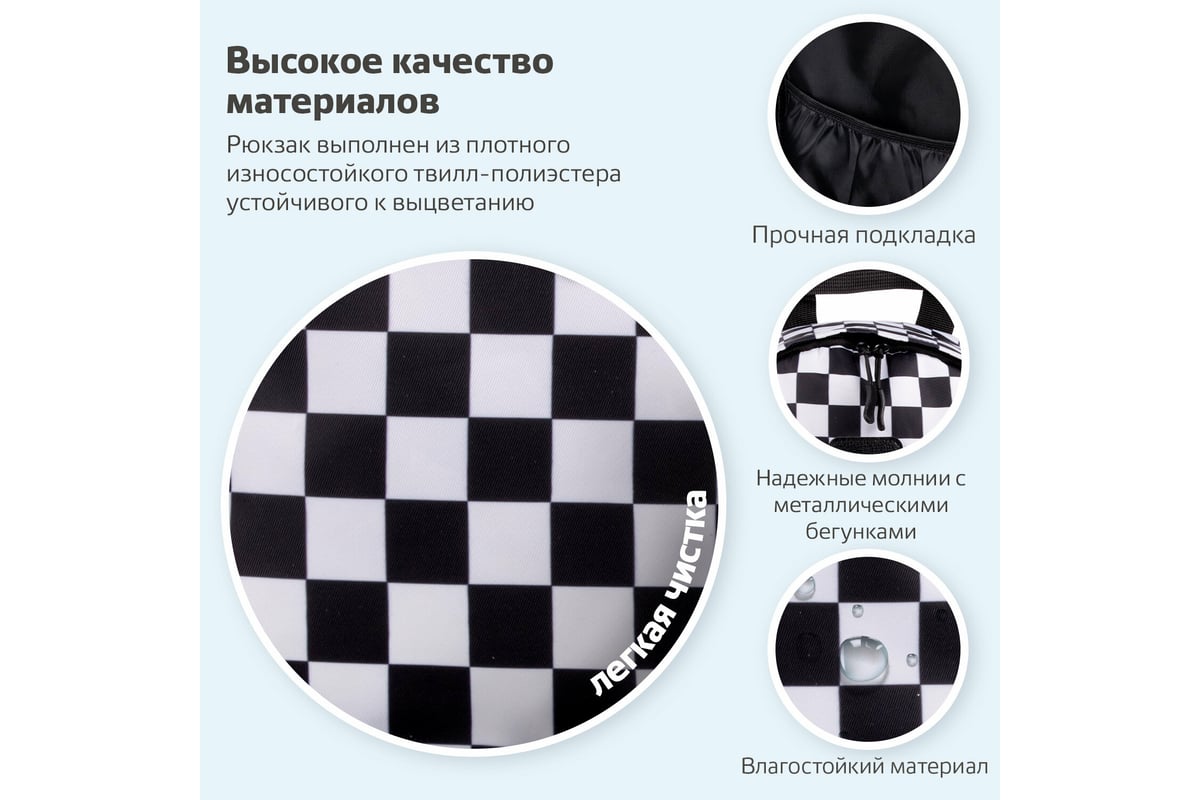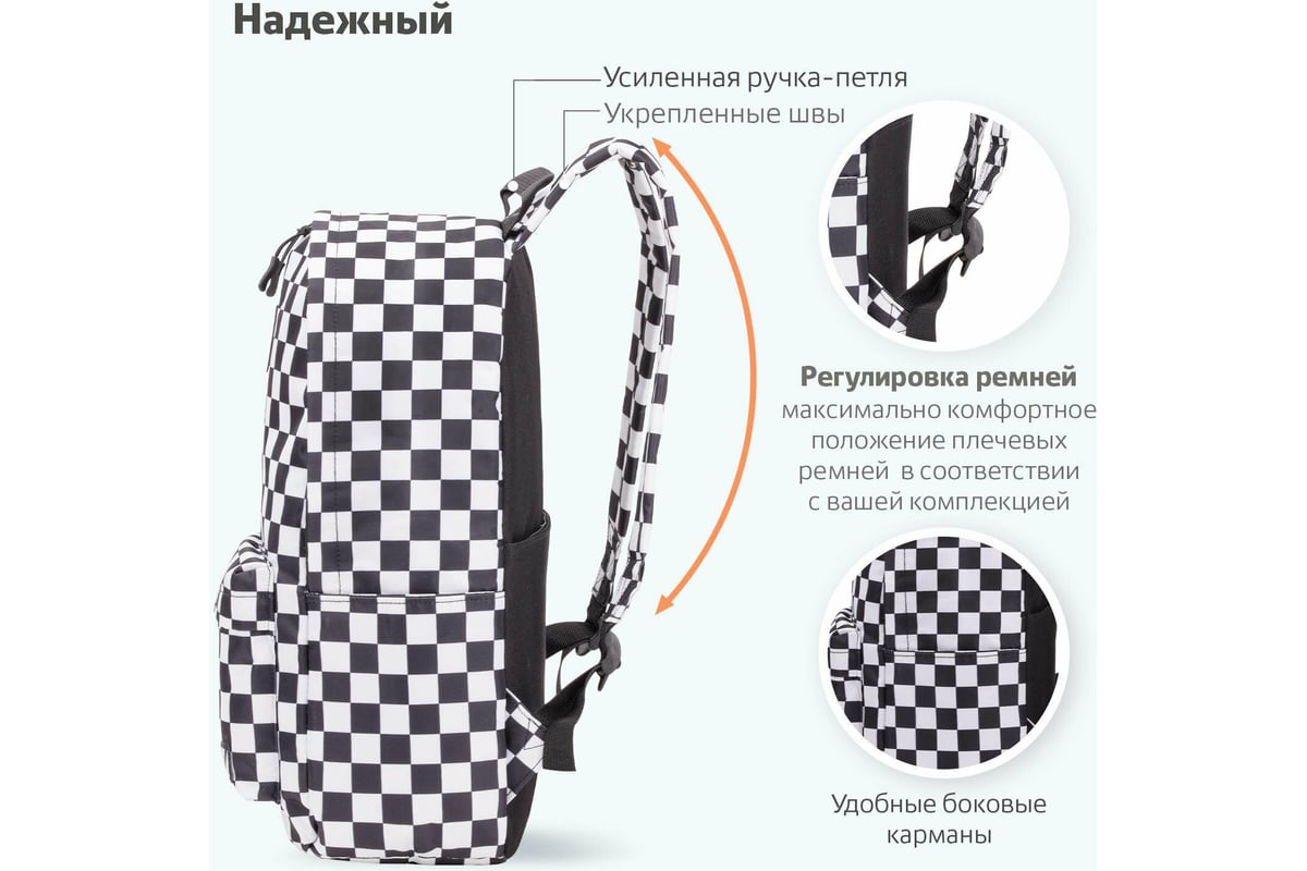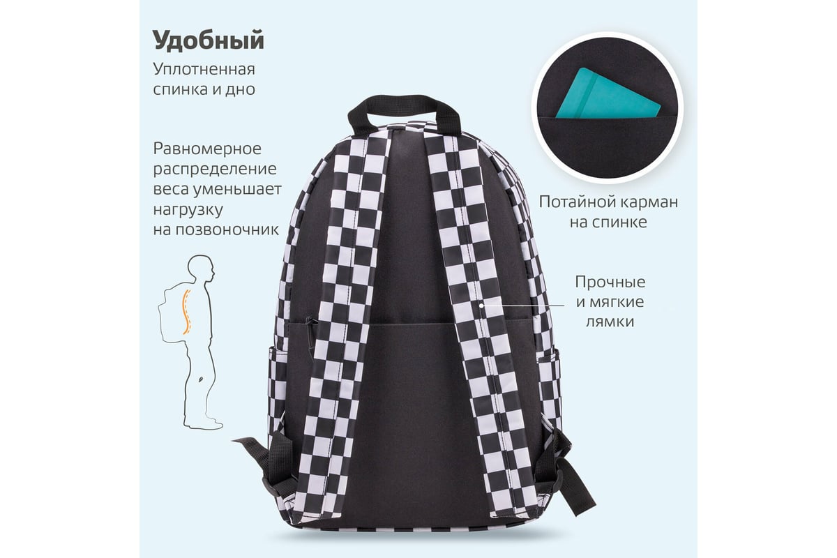 Универсальный рюкзак BRAUBERG POSITIVE, потайной карман, Black and White, 42x28x14см, 270777 занимает лидирующие позиции по популярности среди молодежи.