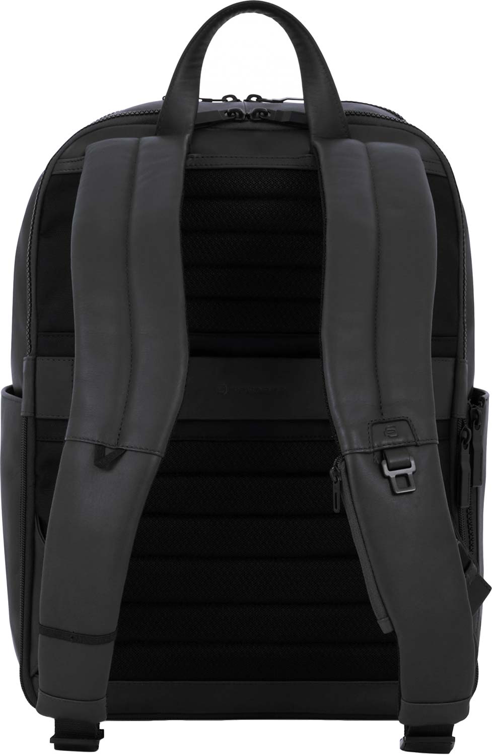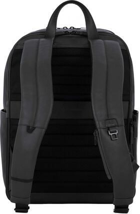 Мужской рюкзак. Изготовлен из высококачественной телячьей кожи. 2 основных отделения на молнии, внутри которых расположены: отделение для ноутбука до 14 дюймов, карман для планшета, карманы для мелочей, держатель для пишущего инструмента. Снаружи: на передней стенке карман на молнии, сбоку карман для зонта. Регулируемые плечевые ремни, на которых есть дополнительный кармашек на молнии, петля для очков и кольцо для ключей.