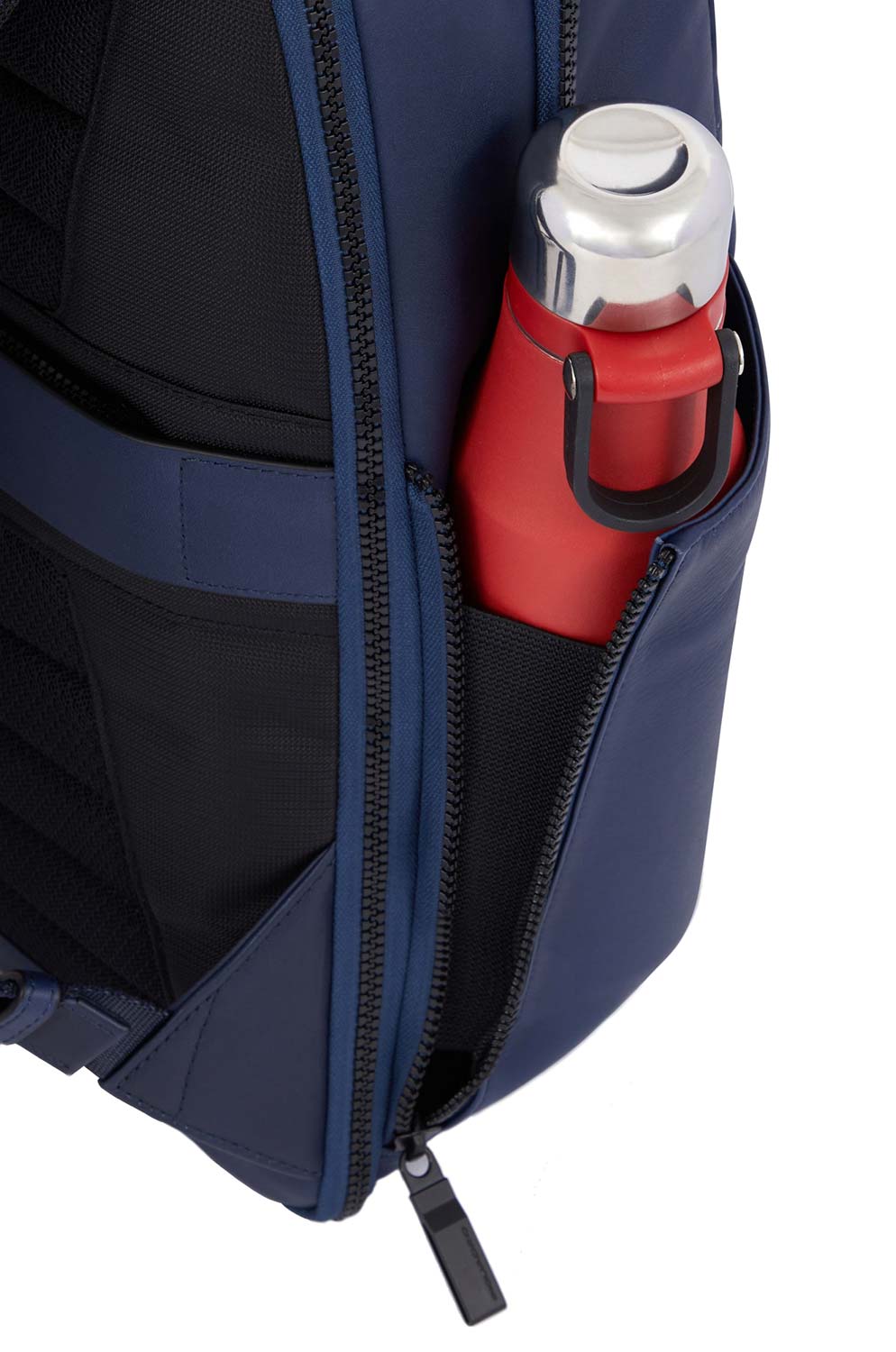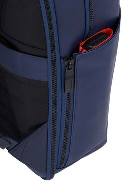 Изготовлен из высококачественной телячьей кожи. Оснащен защитой от незаконного RFID-сканирования. 2 основных отделения на молнии, внутри которых расположены: отделение для ноутбука до 15,6 дюймов, карман для планшета до 12,9 дюймов, карманы для мелочей, 2 держателя для пишущего инструмента. Снаружи: на передней стенке карман на молнии, по бокам карманы для зонта и бутылки. Регулируемые плечевые ремни, на которых есть дополнительный кармашек на молнии, петля для очков и кольцо для ключей.