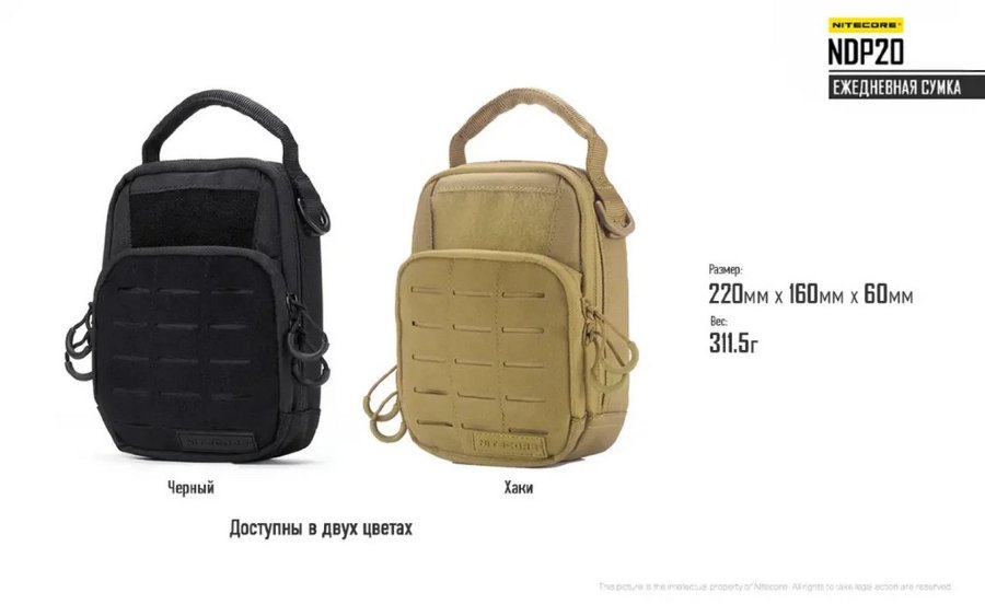 сумка тактическая с контактной лентой Nitecore NDP20 (22х16х6см), tan