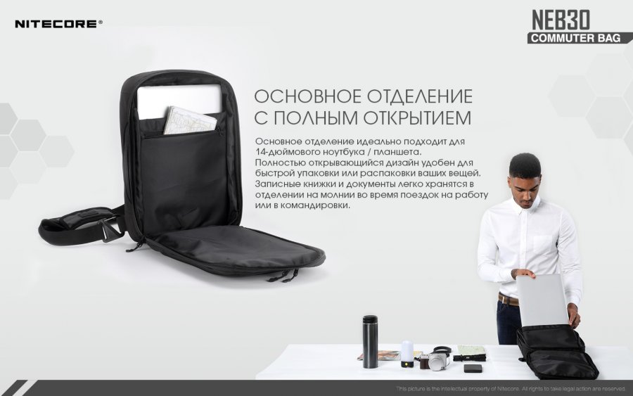 Те сумки, которая фирма Nitecore ранее презентовала пользователям, находят большой спрос. Все благодаря тому, что это очень практичные и многофункциональные модели. Они могут быть повседневными, и тактическими, и также туристическими вариантами. Универсальная новинка Nitecore NEB30 подходит для переноски современных электронных гаджетов. Туда без затруднений поместится, например, ноутбук с диагональю 13 дюймов.