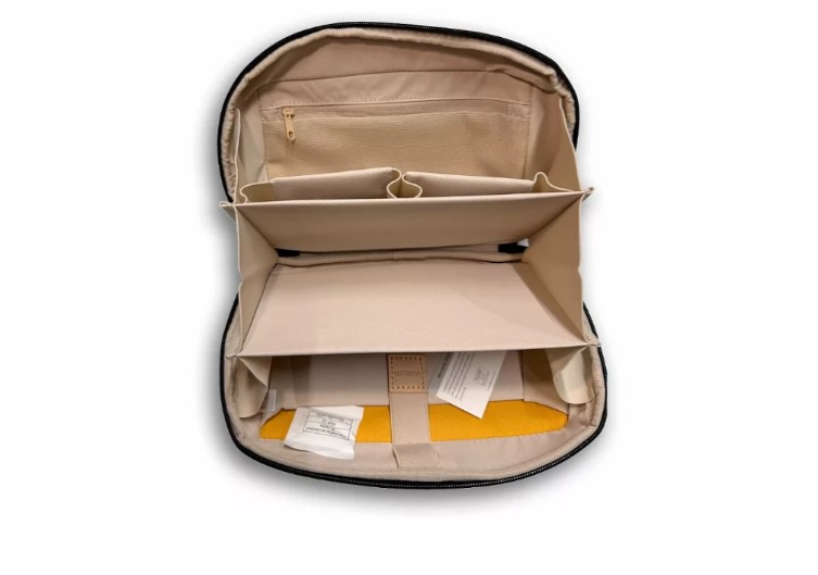 Органайзер выполнен из прочного водоотталкивающего полиэстера с текстильной подкладкой, обеспечивая надежную защиту содержимого от влаги и механических повреждений. Его лаконичный черный цвет с бежевой внутренней отделкой придает изделию современный и аккуратный вид, подходящий как для деловых поездок, так и для повседневного использования.