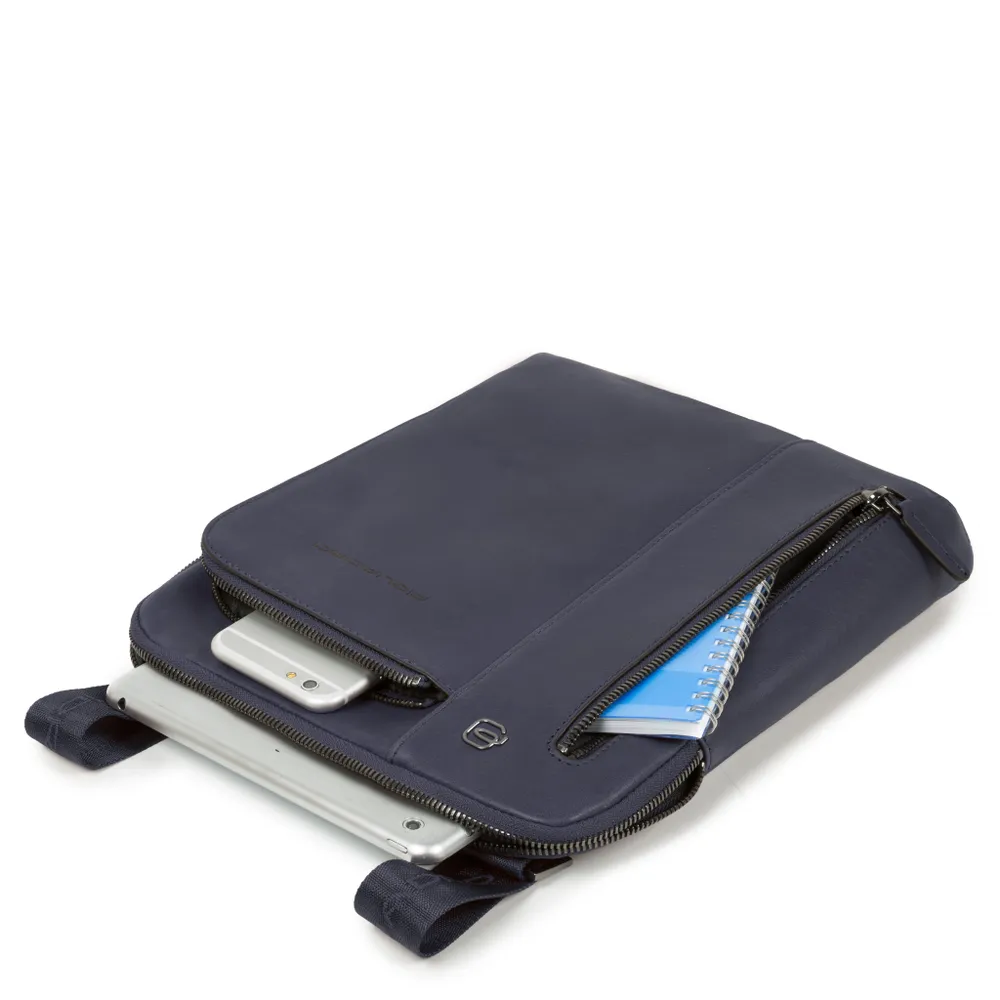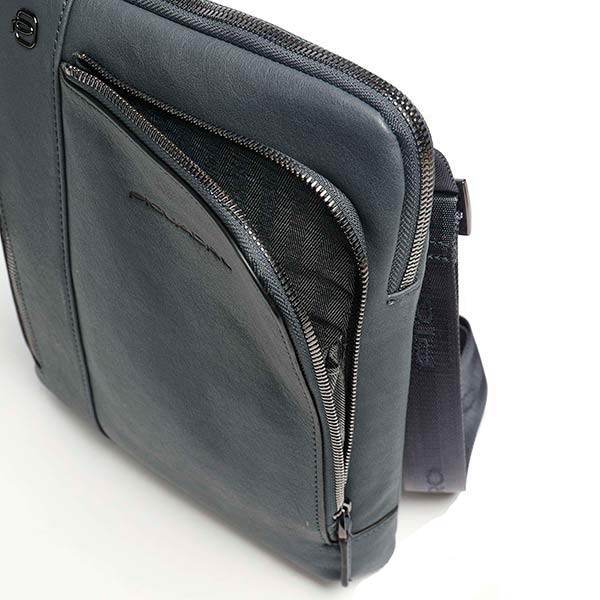 Сумка мужская через плечо Piquadro Black Square изготовлена из натуральной телячьей кожи. Мужская сумка планшет вмещает в себя необходимые документы, кошелек, паспорт, ключи, смартфон, наушники и другие мелочи. Плоская кожаная сумка идеально подходит для повседневного использования. Сумка мужская для документов имеет три отделения на молнии. Плечевой ремень не съемный. Каждое изделие итальянского бренда Piquadro упаковано в фирменный мешок-пыльник, а также в фирменную плотную картонную коробку.