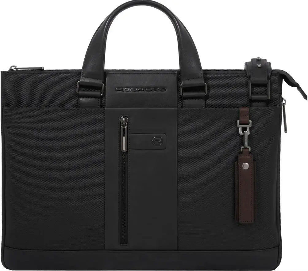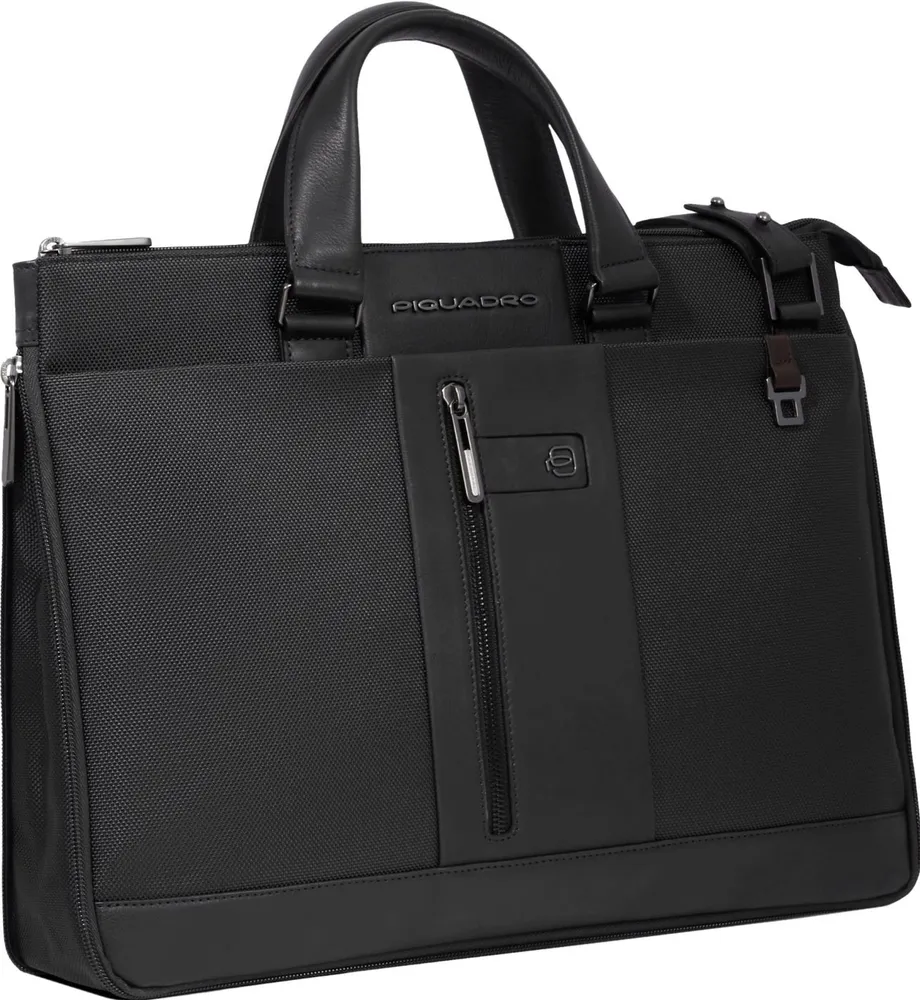 Стильная и надёжная сумка от компании Piquadro, из коллекции Brief2. Сумка имеет одно отделение с отсеком для 15,6 дюймового ноутбука и планшета. При необходимости ширину сумки можно увеличить до 10 см. На задней стенке сумки крепление для ручки чемодана. Съемный плечевой ремень в комплекте.