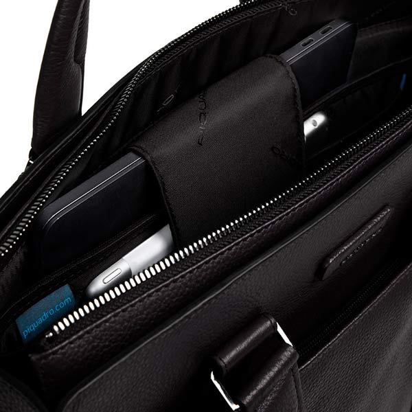 Кожаная вертикальная деловая сумка из коллекции Piquadro Modus Special, подойдет, как мужчинам, так и деловым женщинам. Имеет одно отделение на молнии с отсеком для 13,3 дюймового ноутбука и планшета, а также карманы для письменных принадлежностей и телефона. Универсальная система креплений и ремень позволяет использовать сумку, как рюкзак, либо носить её через плечо.