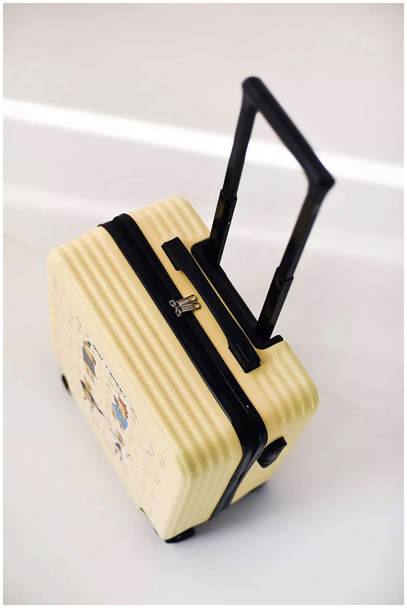 Легкий односторонний чемодан с рисунком оснащен мягкими полиуретановыми колесами с усиленными подшипниками. Он плавно катится даже по неровному покрытию и не гремит. Во время движения, рукоять не вибрирует и не создает дополнительную нагрузку для ребенка. Телескопическая ручка из прочного алюминиевого сплава не заедает даже при резких и неаккуратных движениях. Она плавно выдвигается и фиксируется в одном из двух положений. Максимальная высота до 86 см. Благодаря этому, аксессуар подойдет и малышам от 4 лет и подросткам. И даже молодым женщинам с ростом до 165 см его удобно катить.