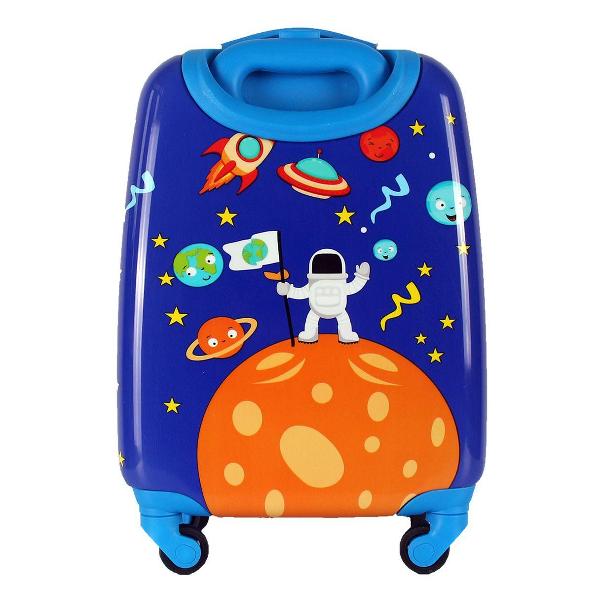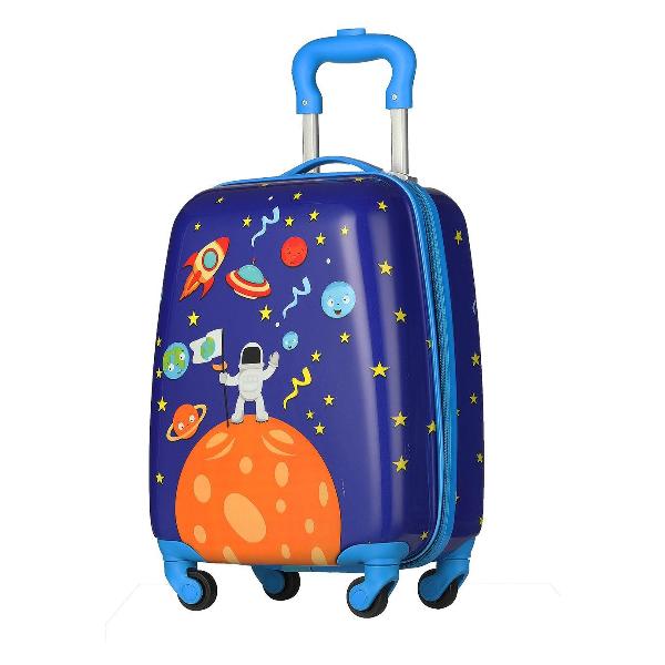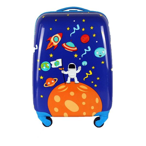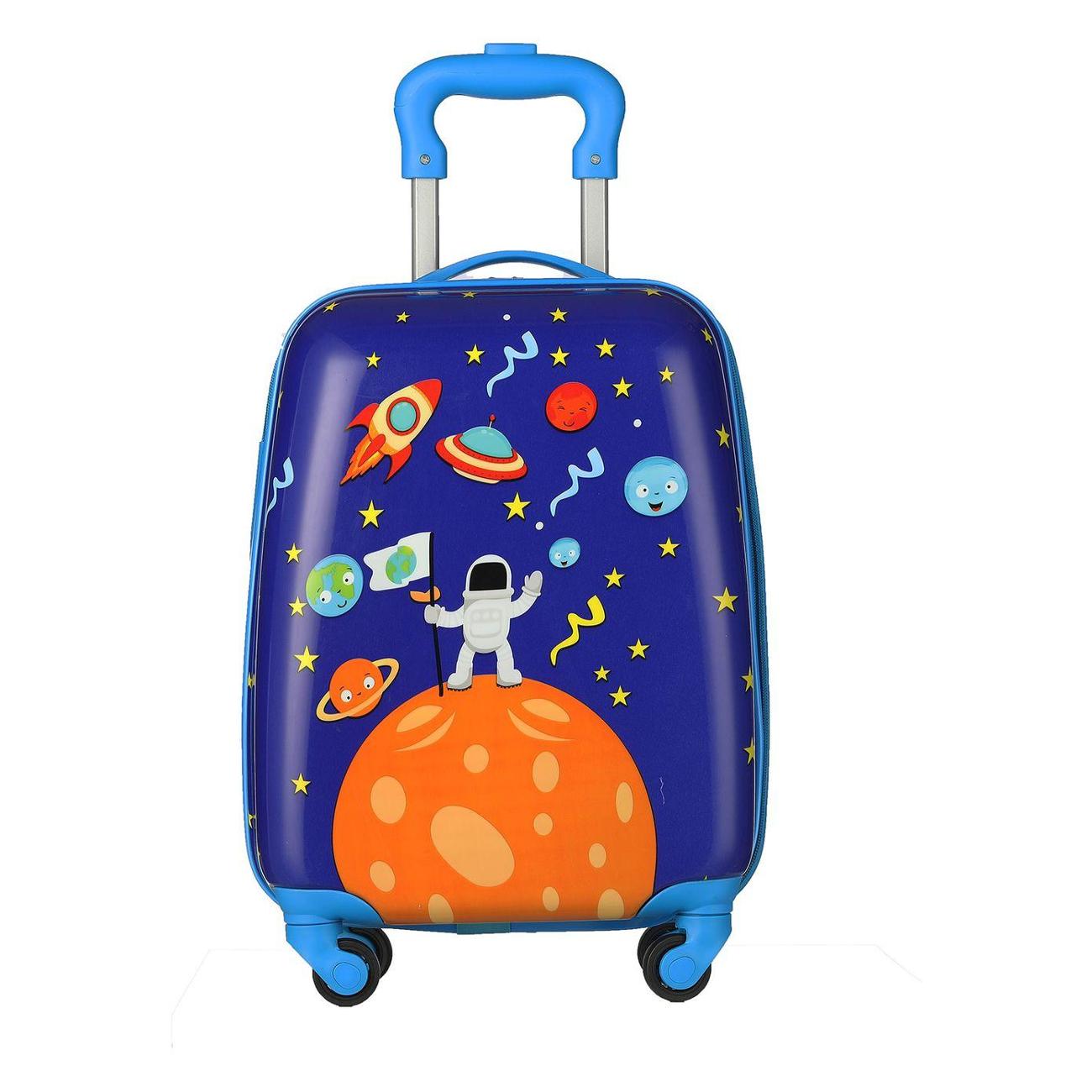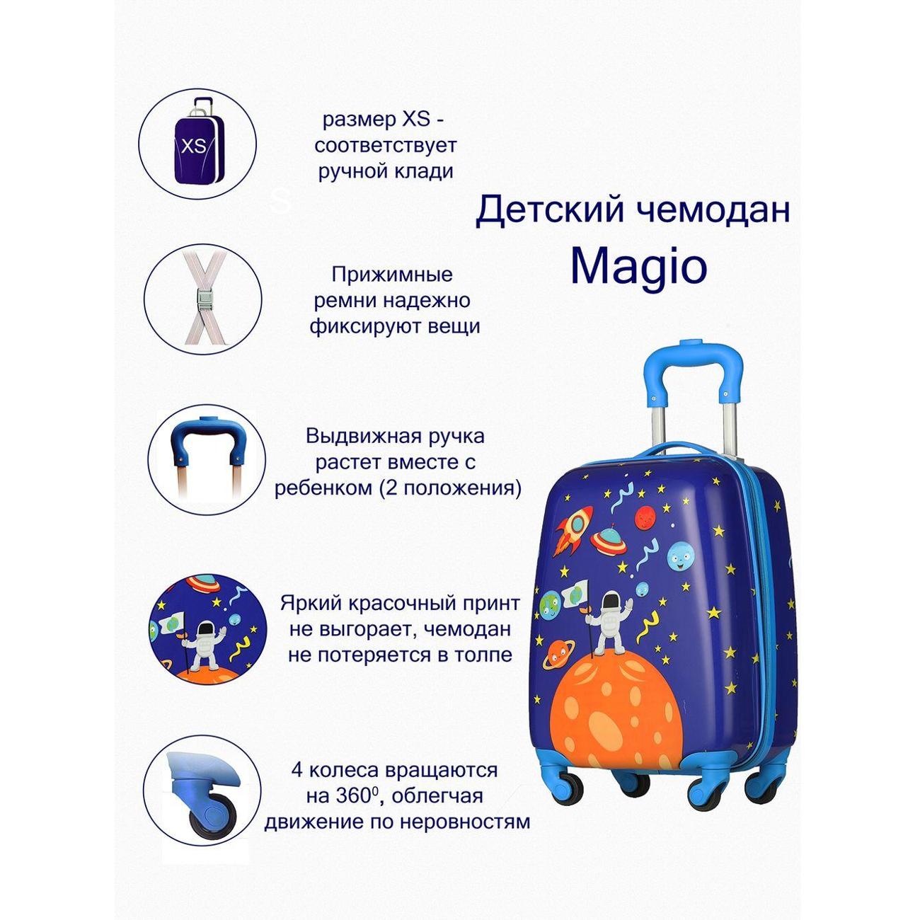 Крепкая молния не заедает во время расстегивания. Внутри основного вместительного отделения есть дополнительный карман для небольших предметов и специальные стяжные ремни для надежной фиксации вещей. Полезный объем чемодана MAGIO «Космос», разноцветный (309) с жестким каркасом составляет 28 л. Детская модель оптимальна для перевозки багажа при передвижении на поезде, самолете, автомобиле.