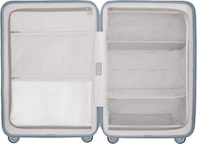 Чемодан с расширенной конструкцией стенок позволяет вместить в него больше вещей в отличии от чемоданов похожих размеров.Минималистичный дизайн в пастельных тонах придаёт чемодану современный и притягательный вид.Чемодан оснащен двумя мягкими ручками для переноси - сбоку и сверху корпуса.Корпус чемодана изготовлен из прочного поликарбоната - он не боится ни ударов, ни царапин.Удобные карманы и отделения помогут комфортно разместить все необходимые вещи, а продуманная система фиксации гарантирует, что все останется на своих местах. Мешок выполнен из ткани, покрытой антибактериальными агентами, что препятствуют активному распространению микробов в чемодане.Телескопическая ручка изготовлена из алюминиевого сплава, защищенного антикоррозийным и долговечным анодированным покрытием. Гибкая конструкция с четырьмя уровнями регулировки высоты подходит для пользователей любого роста.Замок TSA на корпусе чемодана расположен таким образом, что сводится к минимуму его повреждение от ударов и толчков.