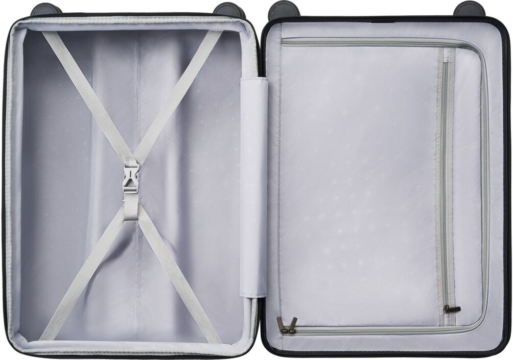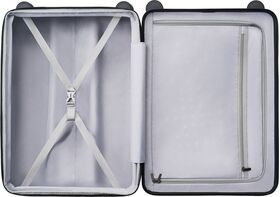 благодаря четырем колесам, боковым ручкам и выдвижной вертикальной ручке, вы сможете легко маневрировать и переносить чемодан; внутренние карманы, разделитель отделений и ремни помогут вам организовать свои вещи внутри чемодана