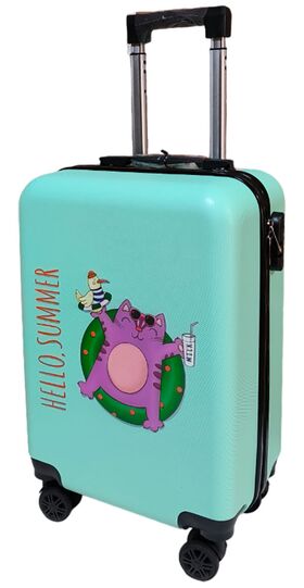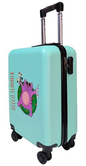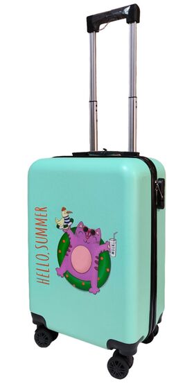 Дорожный чемодан LATS 708 Кот в круге, бирюзовый