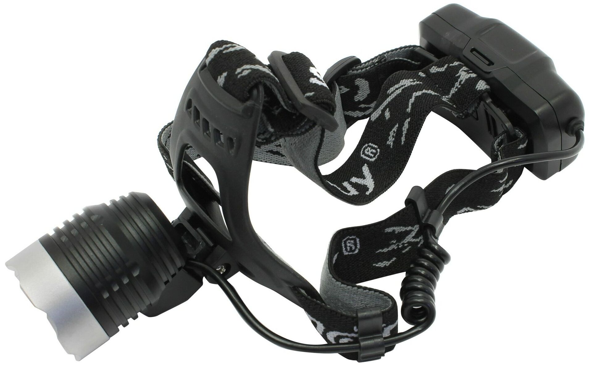 Светодиодный налобный фонарь с 3-мя режимами работы (яркий, средний, стробоскоп). Дальность освещенности до 200 метров. Аккумуляторы 18650 можно заряжать от USB порта при помощи кабеля, входящего в комплект.