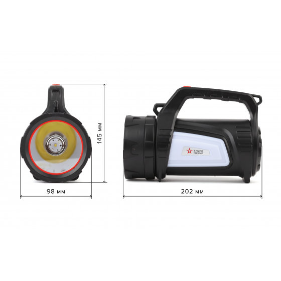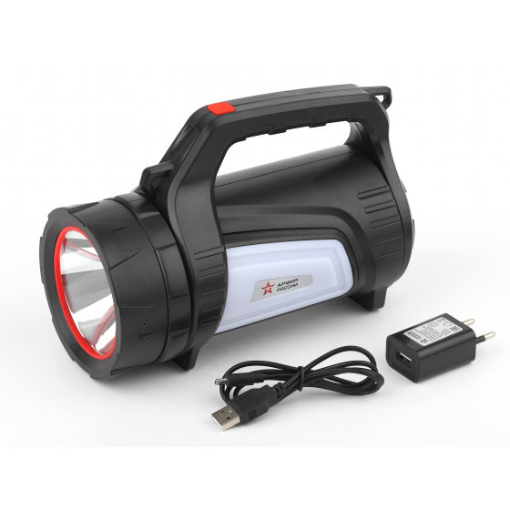 ЭРА Армия России "Шмель" РА-702 - мощный аккумуляторный фонарь-прожектор с дальностью светового луча почти в полкилометра. Имеет 7 режимов работы. Яркие светодиоды последнего поколения. Помимо основного освещения разной яркости, есть два боковых светильника, а также красный аварийный свет. Режимы можно комбинировать, находя лучший вариант освещения для каждой конкретной ситуации.
