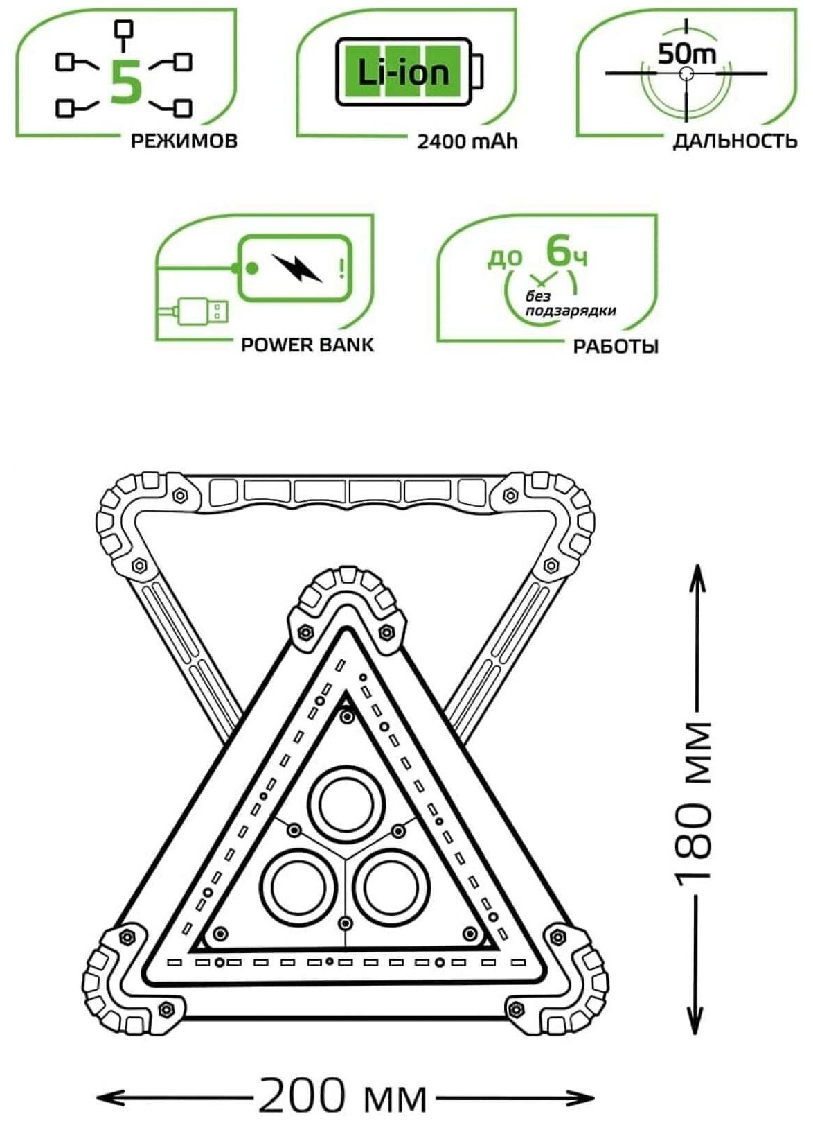 Дальность освещения 50 м