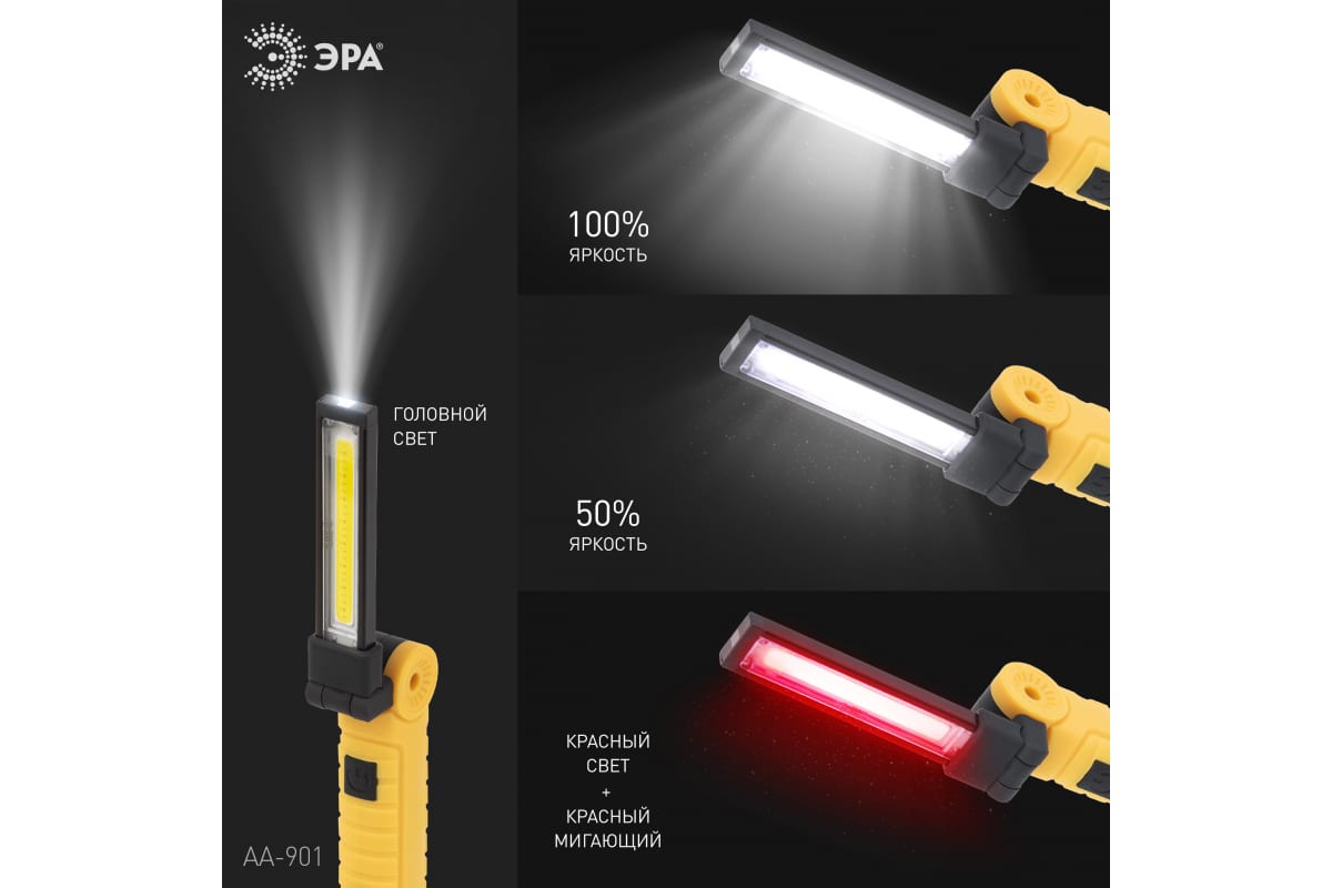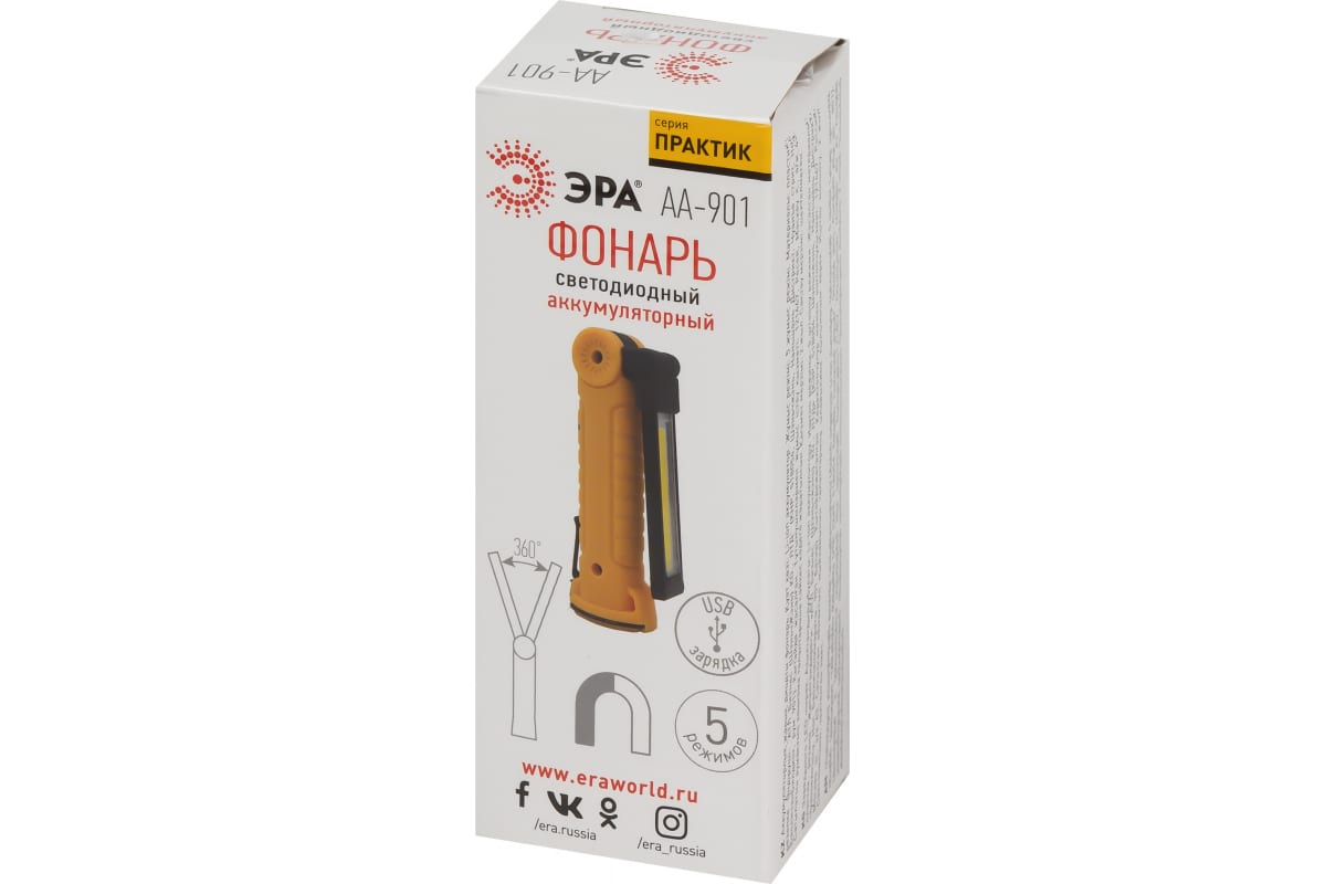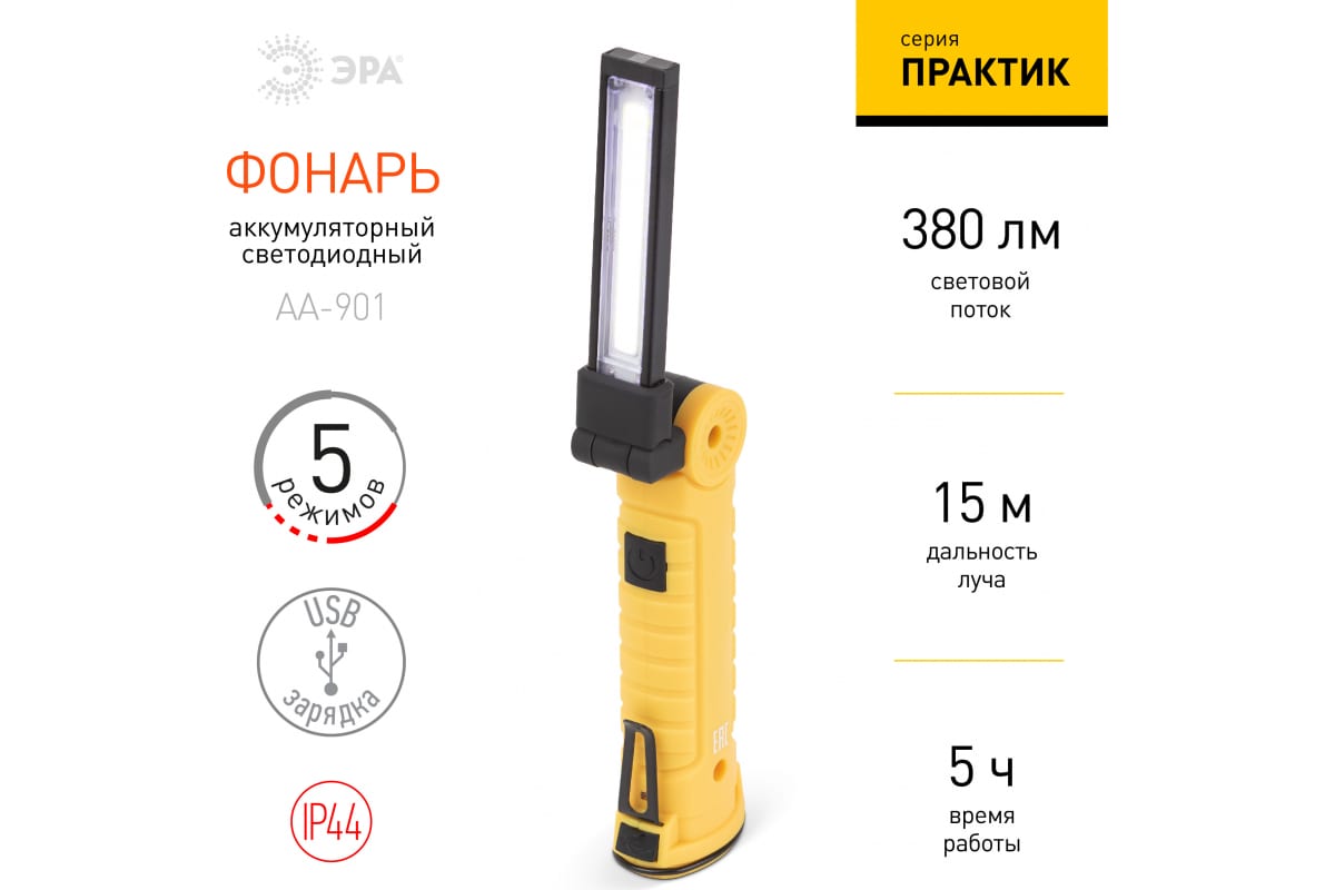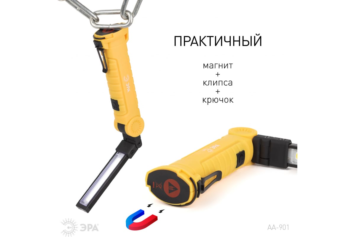 Технические характеристики ЭРА Практик AA-901 СОВ+LED 3Вт магнит, крючок, клипса Б0054041