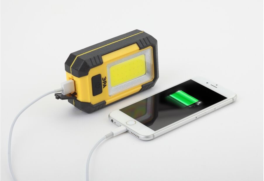 Особенности: COB диод, используется как источник питания (powerbank), Li аккумулятор 6 Ач, 3 режима, магнит, крючок, подставка, зарядка от USB (провод в комплекте)