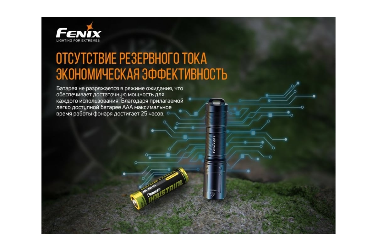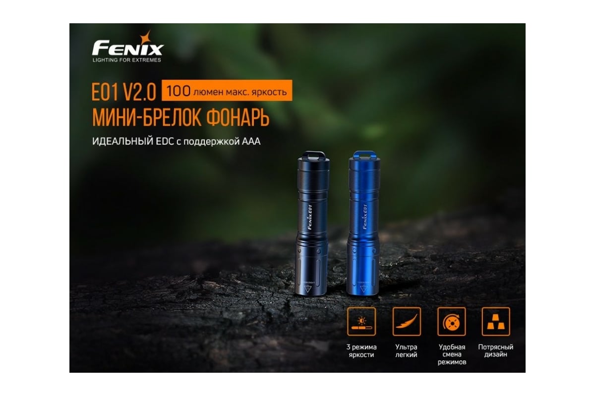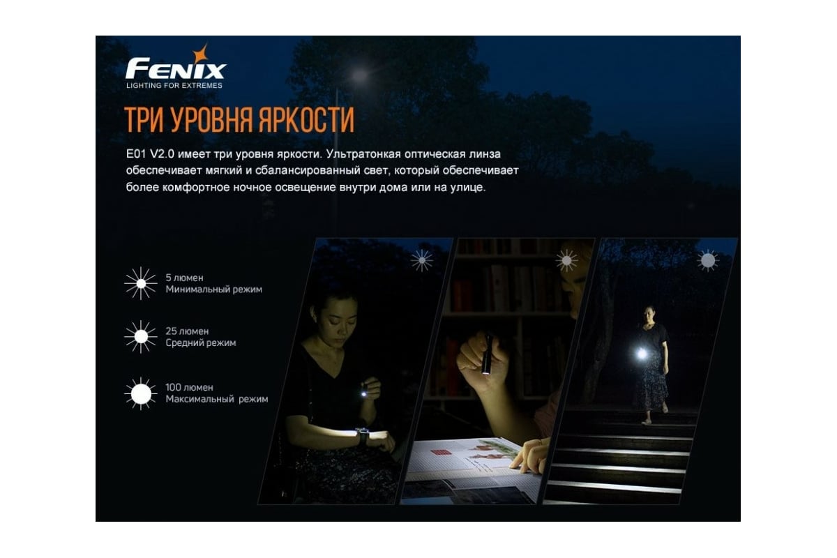 Преимущества Fenix E01 V2.0 черный e01v20bk